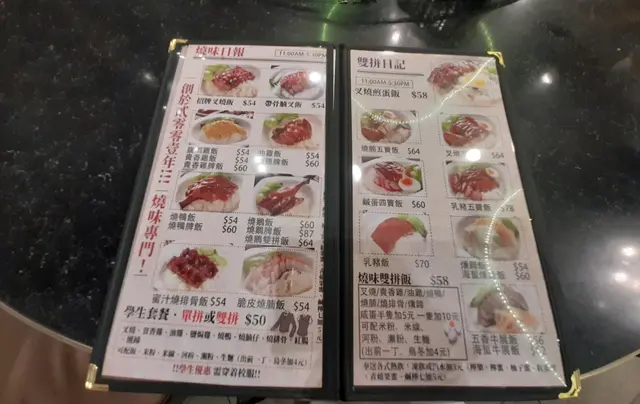 之前約咗男友人噚日(7-11-2026 Fri)出街食晏,我話食燒味,佢話嚟呢間食,OK呀!我哋嚟到見出面有人,係咪等位?原來唔多人等位,係埋單,我等職員得閒啲攞位,佢即指我入去門口張枱,我唔想,就行入啲,指另外一張有位嘅大枱,問裡面嘅店員可唔可以坐嗰喥?佢答可以。坐低後,店員會自動按人頭俾熱水,睇完menu,我就要$58.00嘅叉鴨飯,要熱奶茶。男友人要$58.00嘅叉蛋飯,加$3.00要凍鴛鴦走甜。所有嘢都好快到齊,奶茶茶味偏淡。2分啲餸排得幾靚,叉燒唔係半肥瘦,但瘦中帶啲肥,食落口感好好,蜜味唔太濃,適中,好正。燒鴨俾咗髀位,有肉有骨,正常冇問題。飯嘅軟硬都適中,豉油又夠,最後係成碟食晒。叉燒:5分,燒鴨:3分,飯:4分衛生:冇問題嘅,只係同枱其他食客嘅質素有問題。服務:OK嘅,男友人問攞蔥油都樂意俾。環境:好闊落舒適,溫度又啱啱好唔凍唔熱。抵食係2.75分,因我覺得叉蛋飯唔應該咁貴。上次食評係2016年6月17日提交嘅呢篇:https://www.openrice.com/zh/hongkong/review/%E5%A4%B1%E6%9C%9B-e2604771。