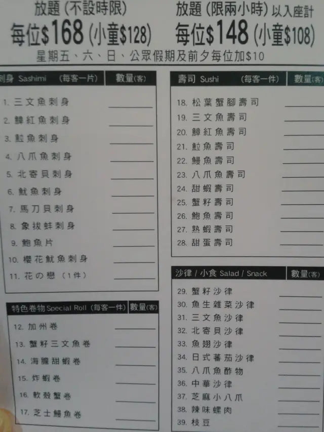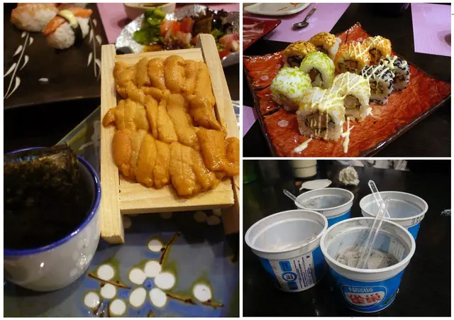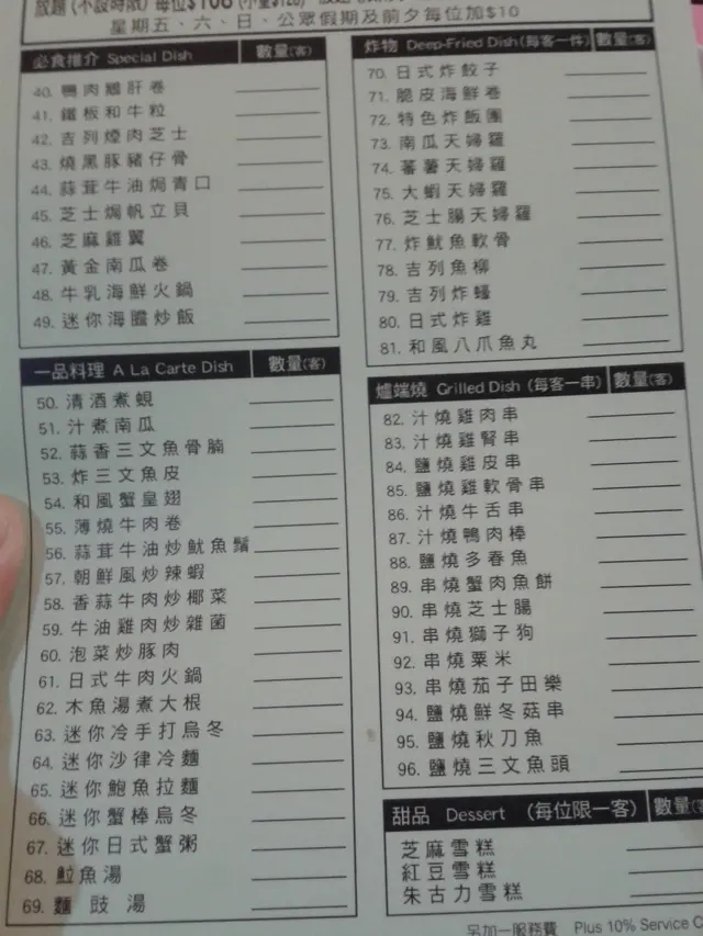 九個人,因旁邊的薩莉亞好多人等位,所以黎試下。點知,食物比想像中細碟(e.g. 炒雜菜只有西餐set枱碟的大小),味道也是普通,但侍應很nice,整體感覺也是舒服的。但壽司等生冷野都不太新鮮....起初是見佢$4碟壽司,好像不錯,咪試下囉。點知!!中伏了,不新鮮之如,玉子有點腥味,而魷魚、帶子、熟蝦、墨魚等類似食物都像橡膠般.....但看到別人的枱上都有壽司,卻是比較新鮮.....可能是我們比較晏去食,佢地就黎收鋪,比D尾貨我地食...而別人是早我一倫叫的,所以比較好...所以真係想試呢間就唔好太晏去....P.S. 請原諒我,沒有食野影相的喜好,是次也沒有相片,但也在培養中,請見諒…Read More