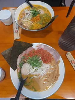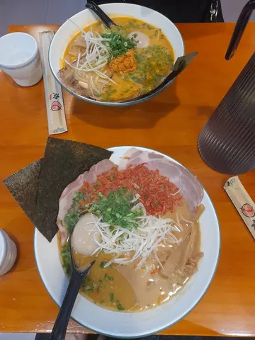 係商場入面既拉麵店,湯底跟麵既種類都可以自己選,麵既軟硬也可以,岩哂鐘意唔同口感的。😁我地兩個一人叫左一碗拉麵跟小食。辛肉碎拉麵湯底既辣度岩岩好,唔會話過於辛辣,當中既配料正常,都不錯,火炙豚肉比普通的更香,糖心蛋流心好味。👍👍櫻花蝦拉麵櫻花蝦給得挺多,拌和埋拉麵既湯底一齊食,味道不錯,慢煮叉燒正常。蜜糖芝麻雞翼香口炸雞翼,食落滿滿蜜糖香味。北海道牛肉薯餅剛炸好既薯餅無得輸,沾埋個沙律醬更加好味。😋