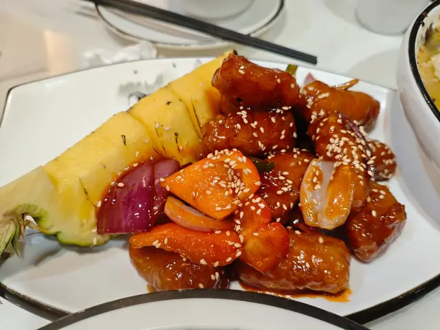 少辣開胃"送"飯一流,忍唔住食左成碗飯呀鮮菠蘿咕嚕肉,呢個真係估佢唔到咁好食,好快就清左碟了,菠蘿真係鮮菠蘿,好甜雞湯鮮菌浸菜苗,純粹要食菜先叫,好食既不過其他太出色被比下去了椒鹽鮮魷,呢個又係好好味