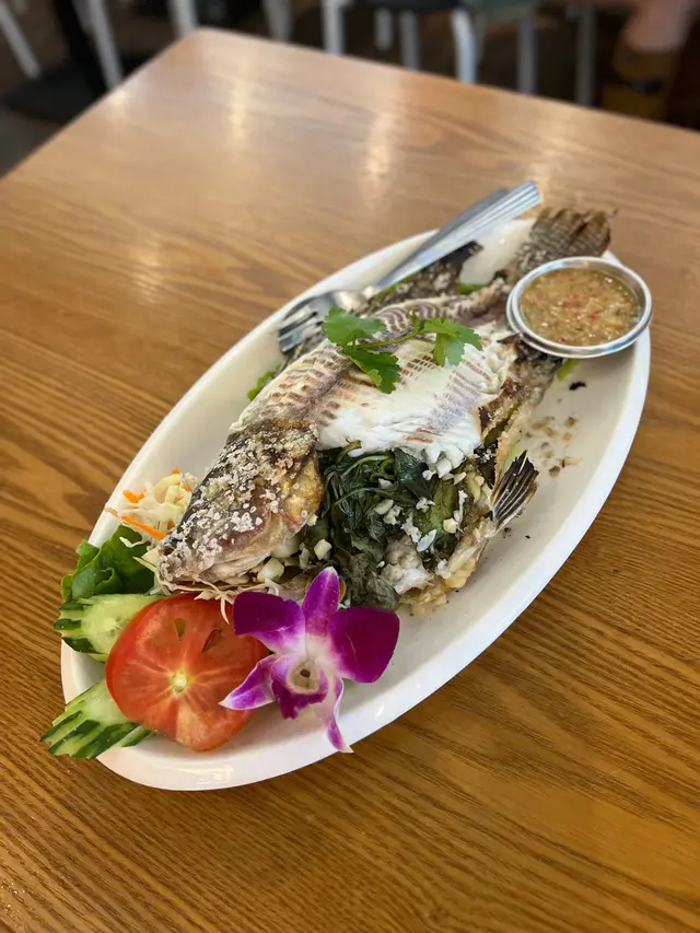 友誼泰國菜館 (九龍城)九龍城城南道5號地舖唔知點解阿仔情有獨鍾,好鍾意食泰國菜,所以今日又試九龍城呢一間,樣樣都好味道😬~豬肉碎生菜包 $78豬肉碎味道香口,配生菜啱啱好,有清新感,食落好開胃又唔會膩🥬😋 ~鹹魚炒椰菜苗 $88椰菜苗夠爽脆,鹹魚味濃郁帶啲鹹香,好惹味,食到停唔到口🥢🔥 ~檸檬燒牛肉 $158牛肉嫩滑帶檸檬香,酸酸地好refresh,鹹酸交織超開胃🍋🥩 ~香葉炒海鮮 $88蝦同魷魚好新鮮,蝦肉特別彈牙,味道鹹香,真係忍唔住食到差唔多要吮手指🍤~椰青原個椰青一啖飲落去超清爽啊💦!椰青水清甜到爆,仲有陣陣天然花香🌴,冰凍飲真係透心涼,飲完成個人即刻降溫❄️👍整體嚟講,呢度菜式款式多,食物美味,性價比高,兼且職員服務有禮,值得推薦,一於下次再嚟試其他美食!…查看更多