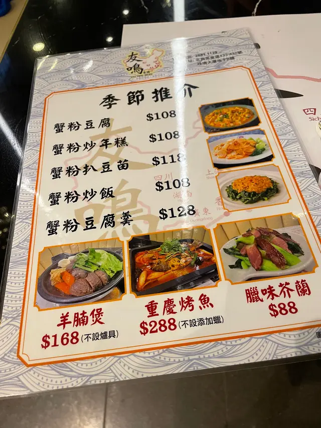 之前食過一次友鳴食譜,質素都唔錯,決定今晚再去食☺️水煮魚非常之有水準,辣得過癮得來,而且魚片軟滑,仲有好多配菜,有芽菜、蓮藕、萵筍等等,口感非常之豐富,非常之抵食😎上海炒年糕都唔錯,首先大大份,而且年糕軟腍,而且醬料調得好好,非常入味,我自己都食咗兩碗😍另外叫咗半隻海南雞,都非常有驚喜,雞件多肉,而且好有雞味,配搭四款醬料,滋味更加爆棚,最鍾意呢一味😙手拍青瓜作為前菜都非常之唔錯,鹹鹹辣辣,非常開胃;甜品方面叫咗紅糖糍粑,食落煙煙韌韌,而且紅糖漿非常香甜,作為甜品一流🥰餐廳設計都非常現代化,有別於一般傳統川菜中式設計,而且環境闊落,食得好舒服🤩…查看更多