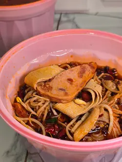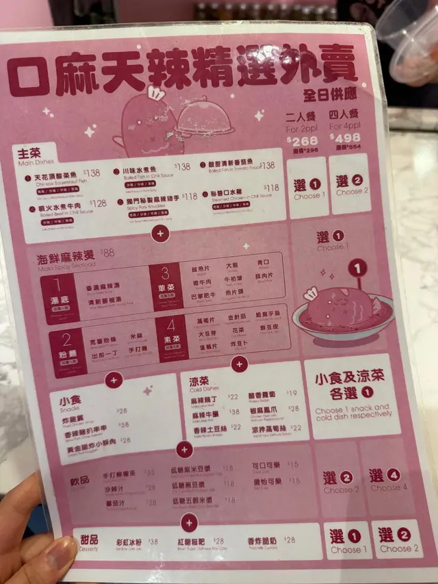 最近經常打風,放工決定唔煮飯買外賣回家,口淡淡於是選了呢間川菜做晚餐。主菜之前,我點了兩份串燒,分別是:半肥黃牛肉串及玉米小串,小朋友見到心心眼,做頭盤啱晒。點咗三個晚餐,分別會跟小食、涼菜及白飯,外賣餐盒都係粉紅色,包裝擺放整齊,回家將外賣盒取出,食物完全冇滲出。海鮮麻辣燙:清新藤椒湯 $88任選三款葷菜及素菜,我選了嫩牛肉、牛柏葉及青口,再配上土豆片、脆魔芋絲及海帶。嫩牛肉肉質順滑,牛柏葉爽脆,青口大隻沒有沙。配料種類繁多包括花椒、八角及辣椒🌶️,入面還有薯粉吸收晒醬汁。麻辣燙可選寬薯粉條、米線、出前一丁或手打麵。酸甜清新蕃茄魚餐$128用新鮮鱸魚,配上蕃茄及其他配料一起燉煮,魚肉厚實唔會煮到爛晒,味道酸甜,小朋友最愛。秘醬口水雞餐 $118辣度選了免辣,小朋友可以食多幾件,雞件份量多,雞肉好嫩滑,配埋雞肉上面嘅秘製醬汁,水準之作,下次試埋佢嘅辣。是日涼菜:香辣土豆絲及涼拌萵筍絲是日小食:香炸脆奶外層炸得香脆,包住入面暖暖嫩滑嘅香濃牛奶,食完大滿足。…查看更多