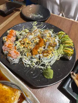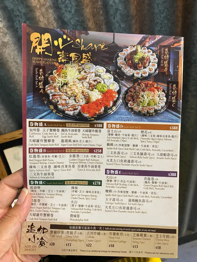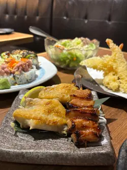 天婦羅有炸蝦,甜薯和釀秋葵最讚是外表夠哂香脆但一d 都唔油,而且炸粉是薄薄一層,唔會食到成口粉。最驚喜是秋葵入面釀左肉, 好得意😊燒物就叫左2款特別推介黑豚豬頸肉串燒入口好爽脆,連d肥筋位都係爽的。 比平時嘅串燒豬好食10倍,必點item 另一款鹽燒雞中翼將雞翼中間剪開再燒燒得均勻又食得方便。 個皮燒到脆脆架古今二嘅卷物超多選擇,而且d名同組合好有創意黑龍卷外表真係成條黑龍咁呀 由鰻魚,炸蟹柳,芝士同牛油果組成煙花由辣味三文魚,辣味吞拿魚同脆片組成脆片造出煙花嘅閃爍感,好有諗頭。入口有軟有脆,口感豐富午夜牛郎由三文魚,牛油果同芝士組成外層包住脆脆,口感好新奇但點解叫午夜牛郎,我仲未參透到
