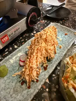 古今是一間非常值得一試的日本料理餐廳,係雅蘭中心個間既裝修比較現代風格,一啲都唔似日本餐廳,感覺很放鬆。本身book 左7點半但早到,待應都肯俾我入去坐住等,態度親切有禮,效率也很高,不過要留意既係平時如果多人既話都有限時90分鐘既用餐,如果想同朋友促膝詳談就揀其他餐應啦。餐廳的食物品質穩定,無論是刺身還是壽司,都相當新鮮。我地兩個人叫左個「今」二人餐,有一個沙律,一個小前菜,一個小鍋物,一個壽司卷,一個五款既刺身,最後有杯野飲同甜品,最後埋單六百幾蚊,價錢合理。沙律正常發揮,用料都新鮮,爽脆的沙律菜,層次感十足,令人印象深刻。小前菜揀左燒茄子,面頭有勁多櫻花蝦,勁正。鍋物要左個壽喜燒牛肉,份量足夠,係啲牛肉質較韌,但味道係唔錯。卷物揀左個富士山,融合了鰻魚、蟹柳碎、芝士和脆片,口感豐富且配合得恰到好處,十分開胃。魚生雖然冇得揀款,但佢都係選擇左普遍香港人中意食既三文魚、帶子、生蝦、油甘魚同北寄貝,用料新鮮,口感甜美。最後甜品係紅豆仙草,做結尾唔錯。正當我地食完曬所有主菜,叫待應上甜品既時候,待應上左個刺身俾我地,先發現原來未食刺身,若果刺身早啲上俾我地會更好。總的來說,古今是一間能讓你品嚐到多款創新與傳統日式料理的好地方,無論是朋友聚會還是拍拖約會都很合適。下次想再試其他創新菜式,值得推薦!🍣✨