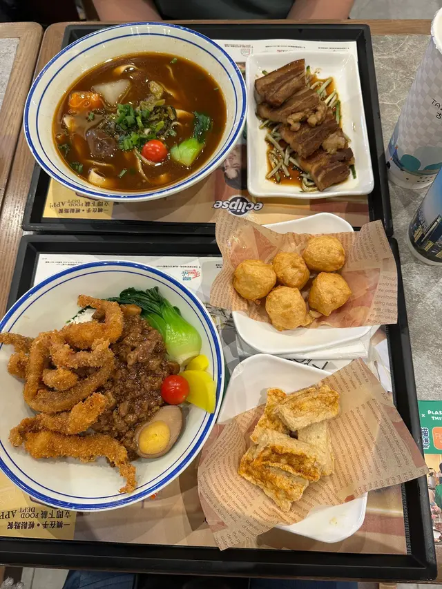 紅燒豬軟骨肉燥飯 $61豬軟骨入口即溶,豬肉吸了醬汁的精華,令豬軟骨味香肉滑,肉燥加在白飯上,完全令人停不了口,直至吃盡。大甲芋泥鮮奶(凍 )加$17芋泥不太甜,加上香濃幼滑的鮮奶,是一杯不錯的台灣飲品,而且有些蘆薈及椰果在鮮奶,令飲品多重口感。鹽酥魷魚鬚新鮮炸出來,香脆的麵包糠包裹著彈牙的魷魚鬚,真的像回到台邊走邊吃的小食。台灣牛三寶麵 $69有入味的牛肚,鹵滿了味道的牛展及貢丸的牛三寶加上煙韌的寬麵條,像極了在台灣的感覺。黑糖珍珠奶茶(凍)加$19奶茶沒有很甜,加上珍珠的味道,真的很有地到台灣的感覺。黃金芋圓球新鮮炸出的黃金芋圓,外脆內軟加上帶甜的芋圓包裹微鹹的蛋黃,令味覺交替鹹甜,小食令人不能停。…查看更多