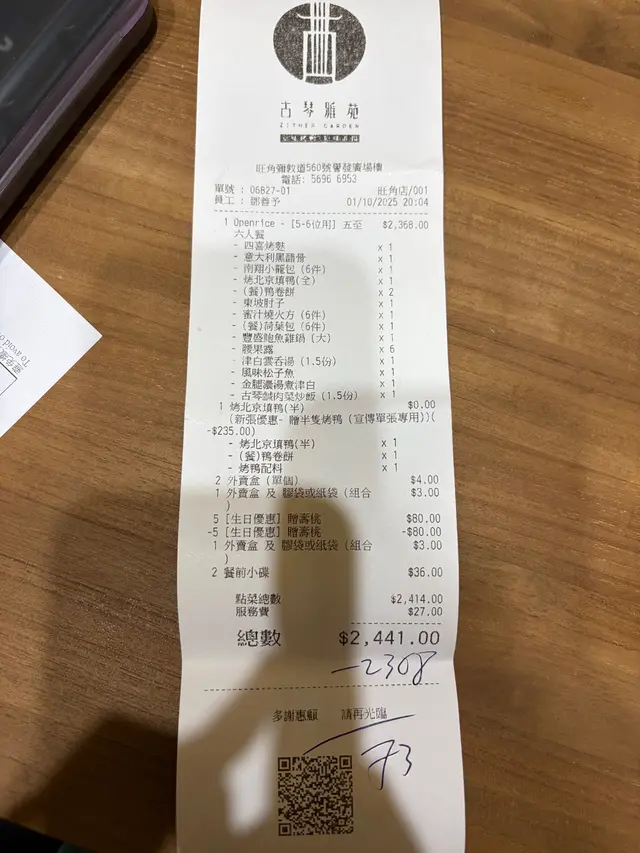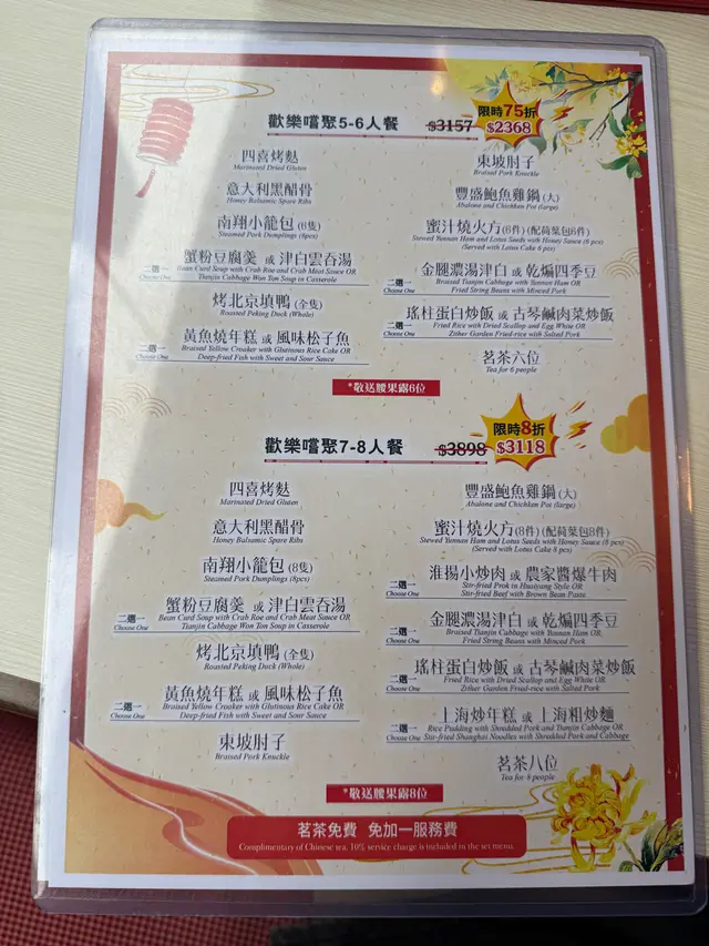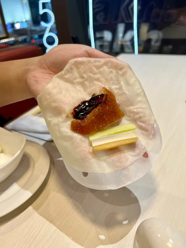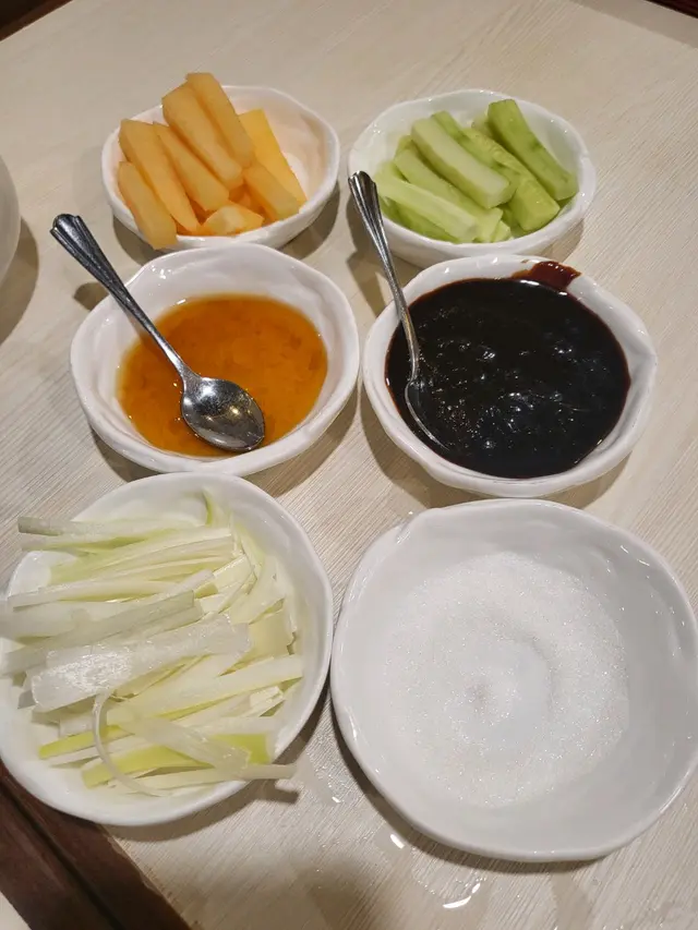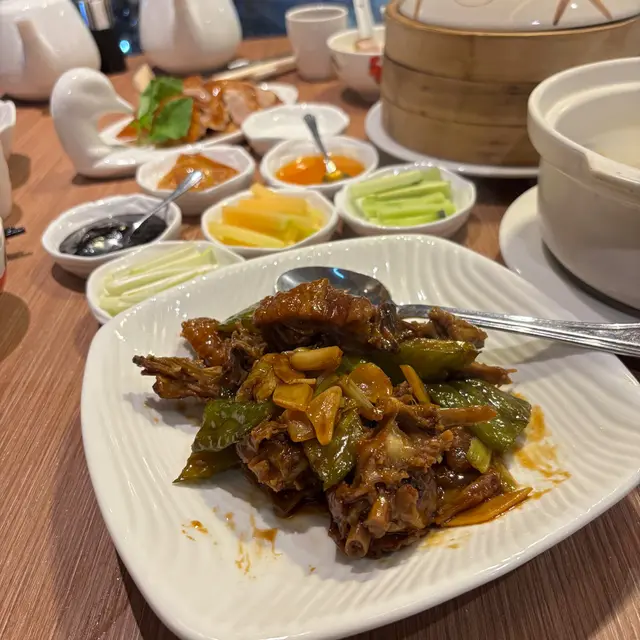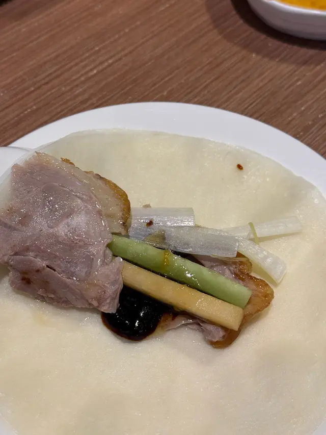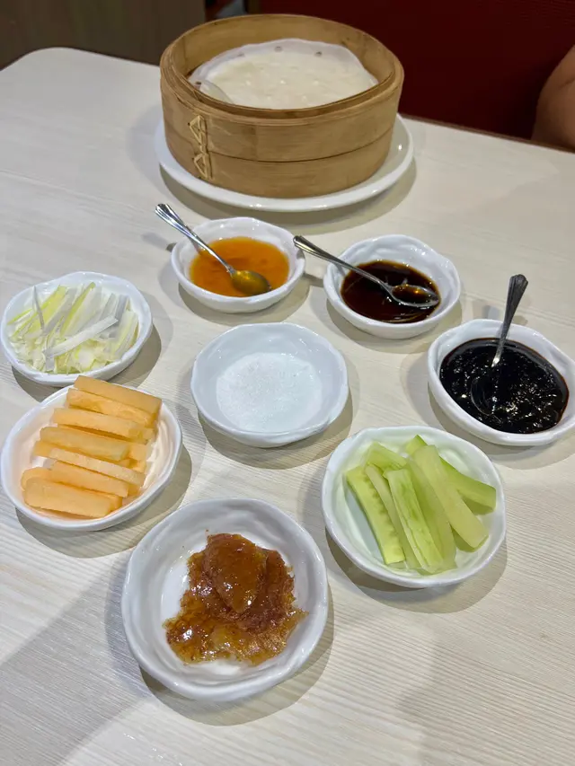 這間烤鴨餐廳最近新開張,只要訂座便每枱免費送半隻烤鴨,於是今天晚上便和朋友一起來吃晚餐。烤北京填鴨:朋友想喝鴨湯,於是我們便點多半份烤鴨套餐,配冬瓜鴨架湯。之前網上看見烤鴨是在客人面前切的,但今次是直接已切好再給我們。烤鴨都算肥瘦適中,而且肉質都算嫩滑,美中不足只是微暖,並不是熱騰騰的,至於鴨湯鹹鹹的味道不錯,挺好喝的。風味松子魚:北京菜除了烤鴨,松子魚亦是我的最愛,可惜松子魚雖然是叫炸,但是脆皮太厚而且很硬,最重要是醬汁甜得嗆喉,正常甜酸醬應該是酸酸甜甜,而這份只得甜膩的味道,真的很難吃。鐵板蔥爆羊肉:另外羊肉亦是我的至愛,這間羊肉的膻味都算濃郁,適合喜愛羊膻味的朋友,醬汁的調味亦相當不錯,如果羊肉份量多一點便更好了。意大利黑醋骨:黑醋骨的份量很少,而且只是微暖,最重要是調味不好吃,大家可以不用點。南翔小籠包:小籠包的皮略為有點厚,湯汁亦不多,幸好豬肉都算鮮美多汁,味道還算不錯吧。瑤柱蛋白炒飯:炒飯比較乾身一些,而且米粒比較硬,不過炒得都算有鑊氣,而且鹹鹹的味道不錯。高力豆沙香蕉:朋友說這是北京菜的著名甜品,是用蛋白製作而成,不過內裡的香蕉餡料只有很少,至於蛋白沒有什麼味道,個人認為味道只是一般。價錢方面,餐廳設有加一服務費和茶位費,四人總共 $1416。總結來說,餐廳的冷氣不夠涼快,食物味道雖然不算出色,但還算可以吧,價錢則中規中矩,不過新開張優惠送半隻烤鴨挺划算的。…查看更多