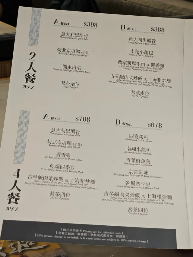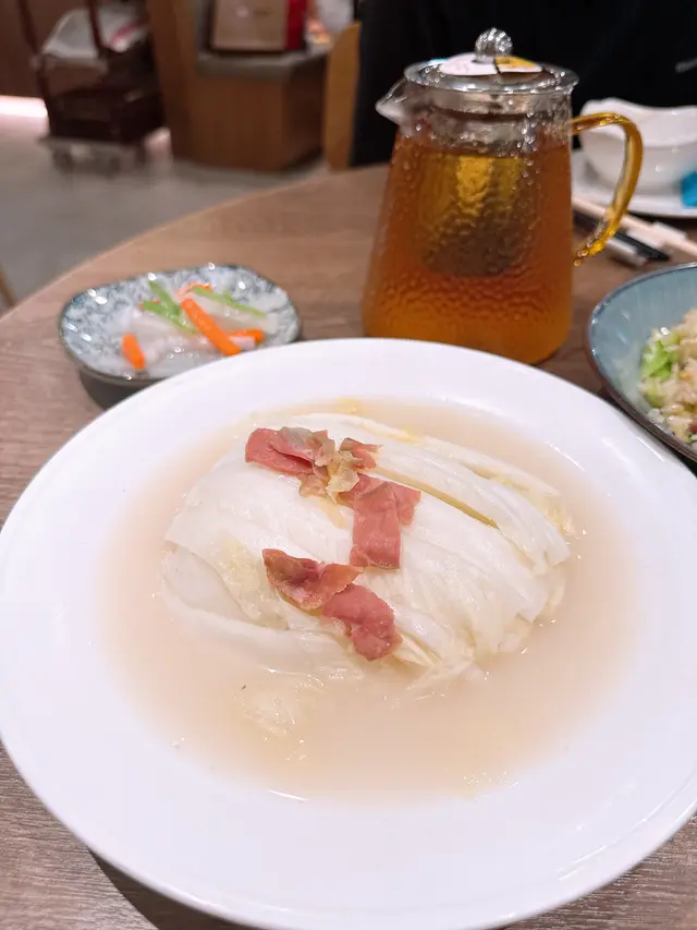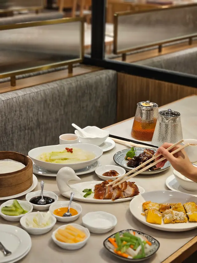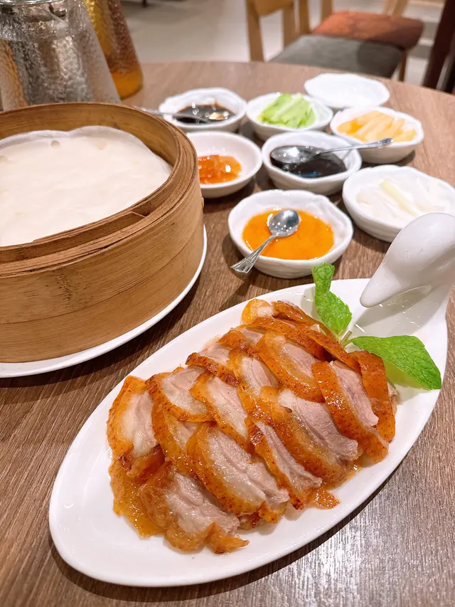 突然好想食好味的片皮鴨,上網睇見呢間評語唔錯,一於訂今晚去試下,呢到有兩人、三至四人、五至六人、七至八人的套餐,好方便有選擇困難症,唔知食咩好的客人。坐低職員就會問想飲咩茶,個桂花烏龍茶好香。然後就會拎個前菜黎,前菜酸酸的味道,好開胃。冬瓜鴨架湯,以每碗上,除左有冬瓜、鴨架,仲有豆腐,湯味清得黎又有鴨味,飲完個人暖笠笠。半隻烤北京填鴨,呢到最出名就係呢到菜,師傅片得好靚,一上枱就已經可以見到金黃嘅色澤,鴨皮入口香脆,鴨肉嘅細嫩Juicy,將北京填鴨放上餅皮,加上甜醬、蔥段、蜜瓜、青瓜等材料,層次口感好豐富。職員話「一口酥」可以搭配砂糖一齊食用,入口鬆化,鴨油嘅香氣好濃郁。套餐仲包左南翔小籠包,一籠有四隻,一定要趁熱吃,小籠包湯汁好飽滿,皮嘅厚薄度適中,真係大滿足。金腿濃湯津白,津白好鮮甜,加上少少咸香的金華火腿,真係好夾。上海粗炒麵,上枱熱辣辣,炒得好有鑊氣,肉同冬菇切到一絲絲,再加上煙韌的粗麵同調味適中的醬油,真係令人食指大動。最後仲送埋杞子桂花糕,唔會好甜,有啖啖的桂花味,好清香。今餐真係食得好飽同滿足,大推。…查看更多