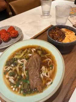 在大圍圍方台北倆伴,餐點的選擇令人驚喜,特別是澎湖荔枝蝦球,外脆內嫩,蝦肉鮮甜,搭配荔枝的清香,讓人一試成主顧。九層塔起司培根蛋餅則是另一道必點之選,香濃的起司與培根融合,帶來濃厚的美味,讓下午茶瞬間變得奢華。紅燒牛肉麵的牛肉軟嫩,湯頭濃郁,彷彿每一口都能品味到肉質的鮮美。下午茶餐的牛肉麵還配滷肉飯,別具風味。牛肉麵的湯汁與滷肉飯的米飯相互融合,讓人感受到層次感的美味,既滿足又不油膩。此外,花蓮櫻花蝦甜不辣給人一種特別的口感,櫻花蝦的鮮香與甜不辣的滑順,為整體菜單增添了獨特風味。飲品方面,仙草奶茶清新消暑,仙草的香氣讓人心情愉悅,而珍珠奶茶則是經典選擇,Q彈的珍珠搭配奶茶的醇厚,令人回味無窮。整體而言,大圍圍方台北倆伴提供的菜式絕對值得一試,讓人滿足又愉悅。…查看更多