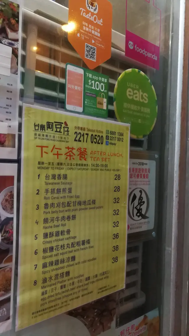 台南阿豆仔 (銅鑼灣) 網址: https://s.openrice.com/QrbS0Uwm700 地址: 香港銅鑼灣蘭芳道19號地下 電話: +852 22170520