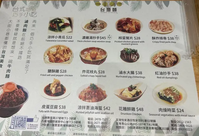 台灣麵 (荃灣) 網址: https://s.openrice.com/QrbS0F5e000 地址: 香港荃灣青山公路 - 荃灣段185-187號荃勝大廈地下A1號舖 電話: +852 24086621