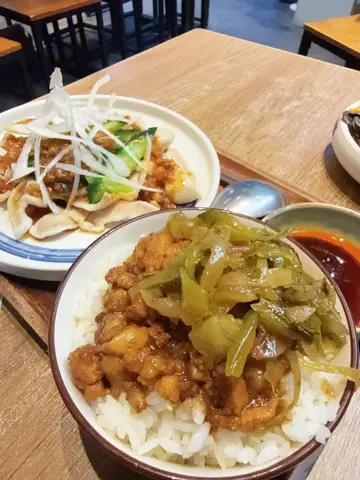 第一次食台蔡滷肉飯,平日12:15分🕚到唔洗排隊有位。今日唔太想食煎炸野,所以order涼拌蒜泥豬頸肉餐,再加碟秘製涼拌木耳,兩碟都係涼拌感覺fresh啲豬頸肉有麻油香,點個辣醬🌶️麻得黎又唔會太辣好嗆口果種,overall幾清爽。滷肉飯都幾好食,個肉汁幾香口。酸菜balance得好好,一個人一個set都算飽。最驚喜係個秘製涼拌木耳✔️✔️,個金黃色食落係甜甜小小辣好爽口開胃,好奇問下店員究竟係點整。店員話個醬係用蘿蔔、蒜頭、蘋果落去攪。呢個dish真係有心思,新界比較唔會expect食到呢個菜式。👍🏻👍🏻呢間台灣菜由盤碟、食物質素都真係幾驚喜,估唔到荃灣都食到港島質素嘅餐廳✨…查看更多