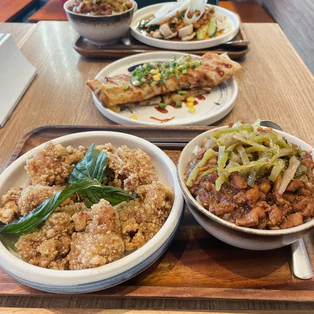 每次食飯時間經過台蔡滷肉飯都見到大排長龍,今次終於有機會試到啦。原本諗住兩點半唔使排隊,但點知都要等半個鐘左右先入到座,睇得出呢間餐廳嘅人氣果然犀利。入到餐廳店員都提醒我地1個鐘用餐時間,我哋都把握時間即刻叫嘢食。我哋就叫咗個招牌九層塔鹽酥雞套餐同埋爆蔥溫泉蛋滷肉飯,當然唔少得肉鬆芝士蛋餅啦~鹽酥雞炸得香脆,入邊仲好Juicy,滷肉飯肥瘦適中仲有啲酸菜可以平衡返個滷肉飯嘅油膩感。爆蔥溫泉蛋滷肉飯撈埋啲蔥同蛋汁一齊食味道更加豐富同有層次,食落超級順口,大推必叫,必叫,必叫呀。蛋餅餅底就夠脆,肉鬆多到瀉晒出嚟,每一啖都好滿足。但就略嫌蛋餅有點硬。總結而言,入嚟荃灣一定要嚟試吓啊!查看更多