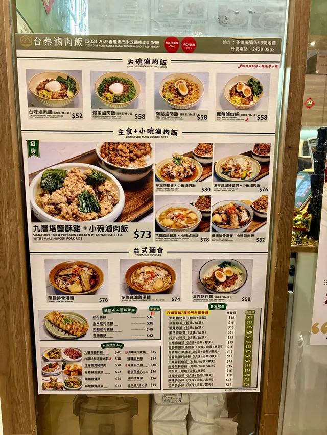The restaurant is located close lo tak food court in MTR Tsuen Wan proximity. It earned a Michelin recommendation in 2024 and 2025. They have all the classic Taiwanese dishes. We ordered five dishes for take away. The waiting time in the evening was 20 minutes. The service was nice. The dishes are all very tasty besides the tempura, which was cold and a bit „hard“ in consistency. Nothing like Japanese tempura. Maybe it’s just not the doh to order for take away.Our favorite dishes were the braised pork rice with marinated egg. Here especially the pickles. The price was rather low for the quality of the dishes. The total amount was around 240$ for 5 dishes. We would certainly go back as it’s one of the best Taiwanese restaurants in Tsuen wan. However we would dine in and not take away.查看更多