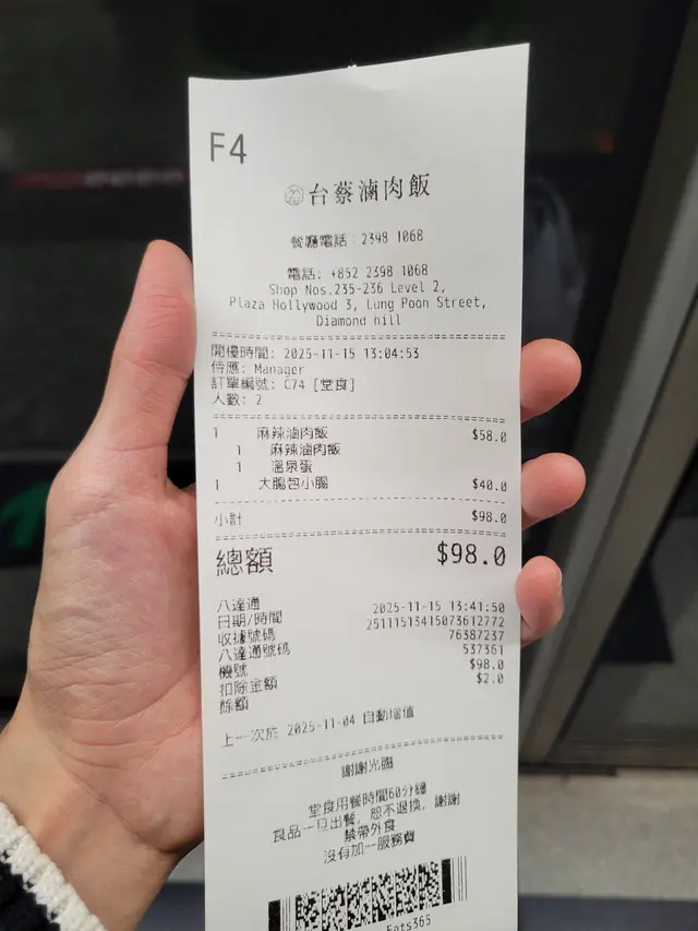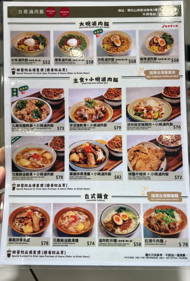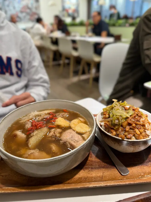 難得有風假,落波後就去荷里活廣場行下,順便一試好多人都讚好,入選咗《2024 2025米芝蓮指南》嘅《台蔡滷肉飯》。佢嘅菜式唔算話好多,我聽過最多人讚嘅係「花雕麻油雞湯套餐」所以我哋點咗呢一個餐,再加兩款小食。套餐包括「花雕麻油雞湯」同「小碗滷肉飯」,飲品另外收費。「花雕麻油雞湯」嘅味道都有帶少少藥膳嘅味道,同時帶有花雕酒同麻油嘅香味,湯味非常濃郁,完全係台北嘅風味。另外套餐嘅「小碗滷肉飯」,豬腩肉肥瘦均勻,而且切得大小均一,肉醃得非常入味,好香好Juicy,米飯亦有咬口,撈埋個滷肉一齊就啱啱好。原本諗住係點兩個餐,但我哋又唔想一人一個滷肉飯,所以另外叫兩個小食好似仲化算。我地點咗店家表示香港第一嘅「九層塔鹽酥雞」,外皮鬆脆,雞肉十分鮮嫩,而且好Juicy唔乾,鹹香味濃郁,就好似去咗台北嘅夜市啲鹽酥雞嘅味道,我諗佢係我暫時食過唯一一間完全係台灣味道嘅炸雞,唔怪得佢咁有自信話自己係香港第一👍🏼。另一個小食係「肉鬆起司蛋餅」,响香港就冇食過,我去台灣時就不時都會食。佢個蛋餅好出色,蛋味濃郁,配合芝士同肉鬆,再加上面層嘅醬油,真係好邪惡,而且份量都唔少,只係$40蚊非常抵食。餐飲我點咗「柳橙茉莉綠茶」,加多15蚊,好過有嘢飲。店內有提供熱水,係自助式自己出去斟水。《台蔡滷肉飯》都幾另外大開眼界嘅一間台式餐廳,佢完全將台灣嘅味道帶到香港,特別係佢個「花雕麻油雞湯」,我曾經响台北一個夜巿食過係麻麻地,呢個湯係我想要嘅味道,我諗佢個「藥膳排骨湯」會更加不得了。佢最正嘅係冇加一服務費,响香港嘅餐廳係比較少有。…查看更多
