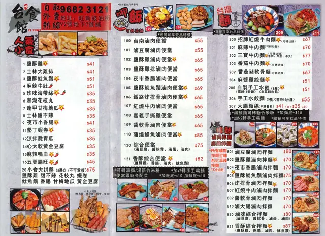 台食館 (豉油街) (旺角) 網址: https://s.openrice.com/QrbS0W9KA00 地址: 香港旺角豉油街92號鴻都大廈地下7號舖 電話: +852 96823121