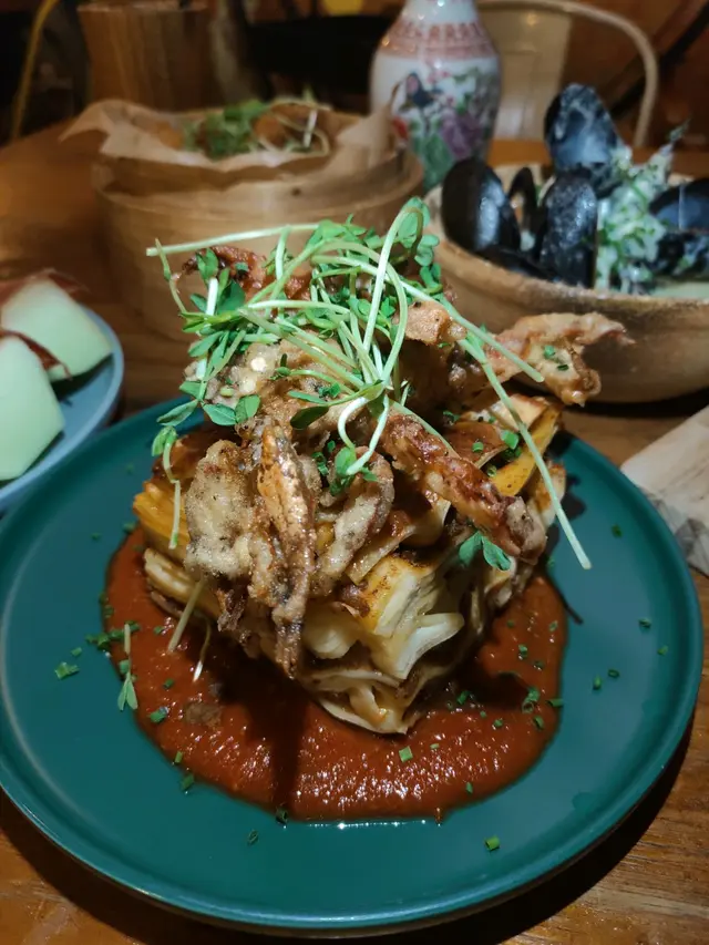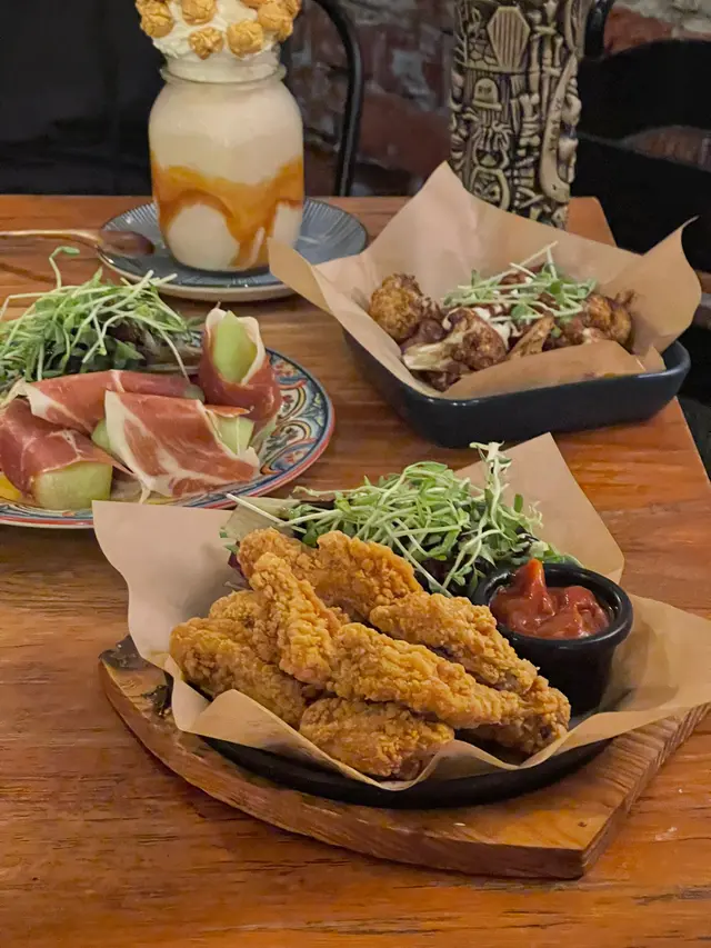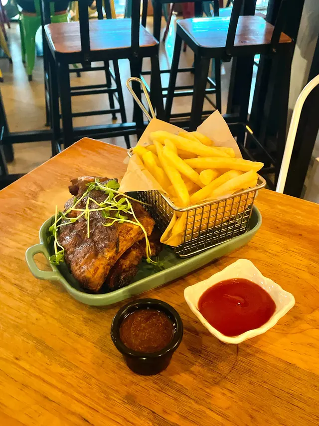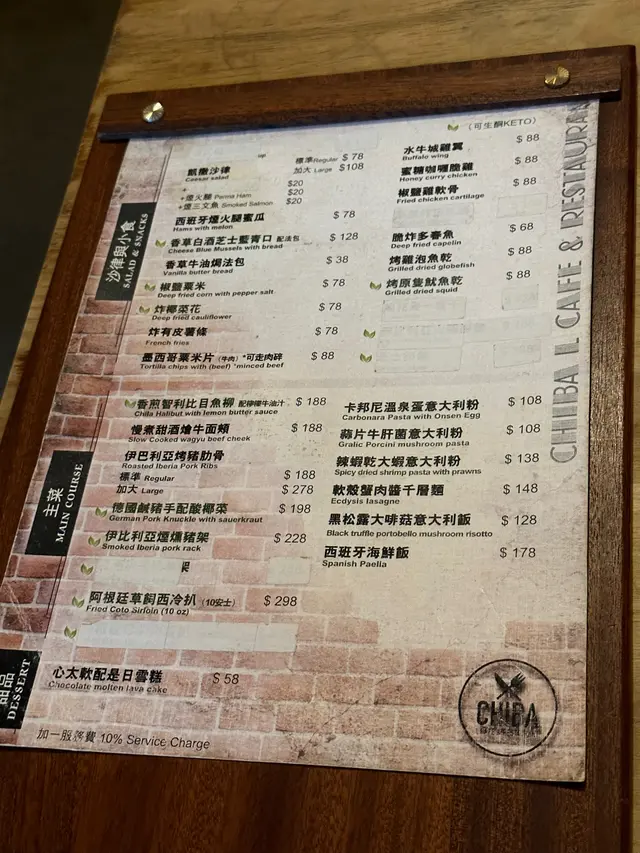 二訪「吃吧CHIBA」,佢哋依度真係好多佐酒小食,啱曬同朋友一齊嚟飲飲食食。*此餐廳收取全單10%服務費。標準伊巴利亞烤豬肋骨(單點$188),表面鋪有豆苗,豬肋骨經過慢烤之後,肉質軟腍,容易拆到骨肉容易分離,方便食用,略嫌出肉量比較少,配以西班牙風味香料、自家製燒烤醬食用,食落好惹味,粗切薯條份量多,配以番茄醬食用,味道更佳。標準煙火腿凱薩沙律(單點$98),表面鋪有溫泉蛋,煙燻巴馬火腿肉質油潤,味道鹹香,配以羅馬生菜、煙肉碎、麵包碎、凱撒沙律醬食用,味道清爽。烤原隻魷魚乾(單點$88),魷魚乾食落好香口,配以日本豉油、芥末食用,味道鹹鮮。蜜糖咖喱脆雞(單點$88),表面鋪有豆苗,雞塊表面裹滿蜜糖,採用咖喱粉醃製雞肉,口感外香脆內嫩滑,味道鹹甜,略嫌咖喱味道偏淡。Happy Happy "Cat"(單點$68),採用青檸汁、菠蘿汁、蔓越莓汁、梳打水、熱情果糖漿製作,飲落好清爽。Pink Sunshine (單點$68),採用檸檬汁、橙汁、湯力水、蜜桃糖漿製作,味道酸甜。…查看更多