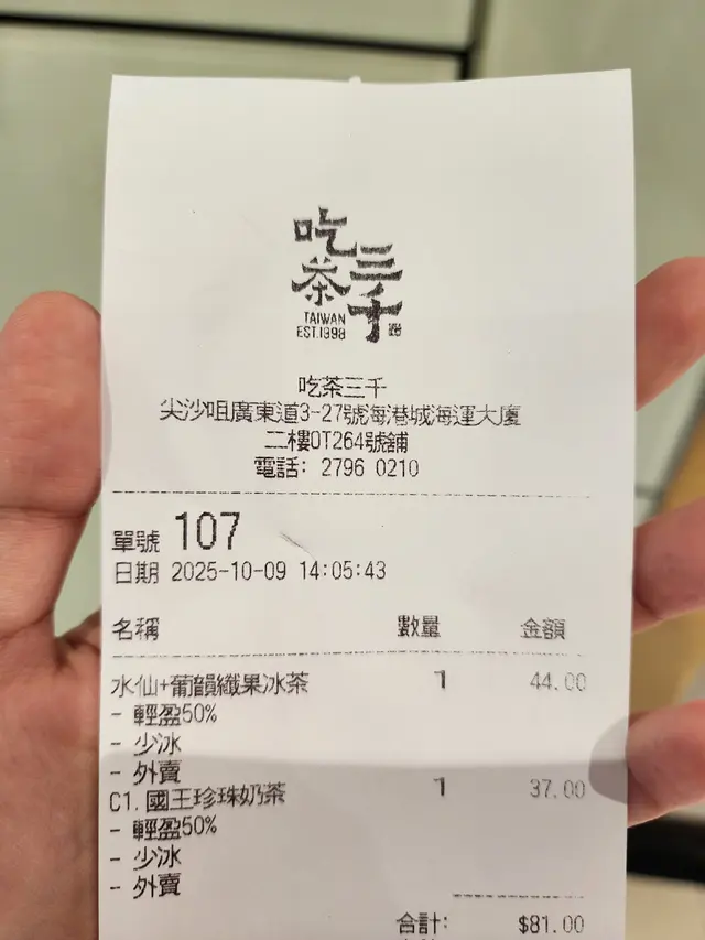 吃茶三千 (海運大廈) (尖沙咀) 網址: https://s.openrice.com/QrbS0ZWWB00 地址: 香港尖沙咀廣東道3-27號海港城海運大廈2樓OT264號舖 電話: +852 27960210