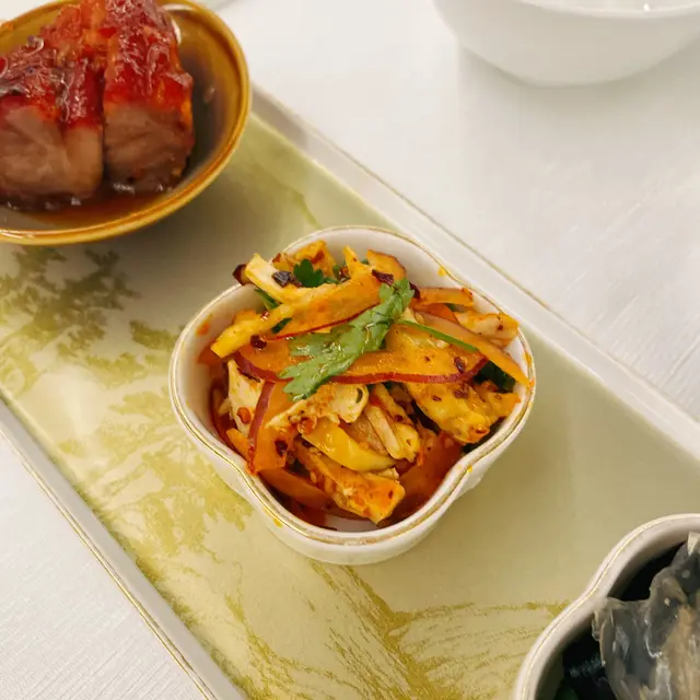 晚市上到合和酒店20樓,與好姐妹兩人為生日小聚🎂。餐廳寬敞舒適,柔和偏黃燈光襯得溫暖🍯。呢度有16個個包廂,中式傳統藝術風格,私隱度高,部分還有小窗景🪟。不過今次因為太遲訂房,只可以坐大廳,好彩出面都好大好舒服。呢度主打當代粵菜與創意演繹,選擇超多📜。我地最後揀左佢呢期最新出既二人套餐試試。合和軒晚市套餐($698/2位)編排有層次:前菜三小碟—合和黑豚肉叉燒、涼拌紅蜇頭、麻辣手撕雞先開胃,其後上羊肚菌淮山螺頭燉雞湯,接着熱炒菜遠炒斑球、韭黃滑蛋炒蝦球、啫啫芥蘭煲,最後以絲苗白飯配甜梅菜蒸肉餅,糖水糕點收尾,配茶勤添水,節奏由清到濃,服務編排恰當。合和黑豚肉叉燒 🫶🏻🫶🏻🫶🏻🫶🏻🫶🏻:厚切但不失嫩,脂香均勻,邊位微焦帶蜜香,鹹甜拿捏得好,溫度控制令肉汁鎖住,炭香集中外沿,油而不膩。羊肚菌淮山螺頭燉雞湯 🫶🏻🫶🏻🫶🏻🫶🏻:湯色清亮無油,先聞菌香,入口螺頭鮮甜帶骨香,味道非常清甜。甜梅菜蒸肉餅 🫶🏻🫶🏻🫶🏻🫶🏻:手剁質感,鬆中帶彈,梅菜甜鹹平衡,湯汁撈絲苗白飯正好。呢度唔算難Book位,可官網或OpenRice訂位,單點經OpenRice有85折;無開瓶費🍷滿$600送3小時泊車🅿️。…查看更多