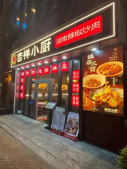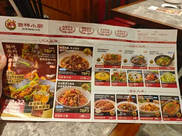 幾個月前食過一次湘菜(即喺湖南菜),感覺幾唔錯,其實湘菜晌香港嚟講,應該都有啲冷門。最近,意外發現山林道呢邊都有一家賣湘菜嘅小店「吉祥小廚」,所以,趁周五晚大家都懶煮,同老婆過嚟食餐便飯。門面紅噹噹就非常搶眼,入到鋪內,裝修都比較古雅,天花吊燈頗為別緻,而環境乾淨企理:),牆上嘅顯示屏更打出餐廳嘅招牌菜。一大張紙就喺餐牌,一面印有「三大皇牌」、「八大網紅必點」、「宴客大菜」等系列,而另一面就分門別類印有唔同菜式,例如:「老長沙熱炒」、 經典湖南蒸菜」、「湖南特色小吃」……等等。最窩心喺無茶芥,又無加一服務費