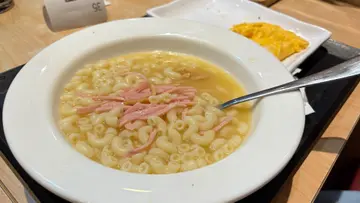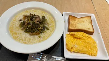 呢間嘢啱啱開始有早餐估唔到幾好食叫咗三個餐沙嗲牛公仔麵有花生味,牛肉好腍公仔麵份量都多雪菜肉絲米,米粉唔係透明米粉雪菜肉絲份量多湯底有雪菜味又唔死鹹幾好火腿通份量好多雞湯底味道幾好丹麥多士又係超多牛油,好脆好食不過奶茶就好一般,茶味太淡齋啡都唔好飲但阿華田就好好飲好濃全部餐都跟煎蛋/反蛋/炒蛋同丹麥多士味道都正常另外有個瘦削戴眼鏡嘅姨姨態度非常好 又快手值得稱讚 會再去食