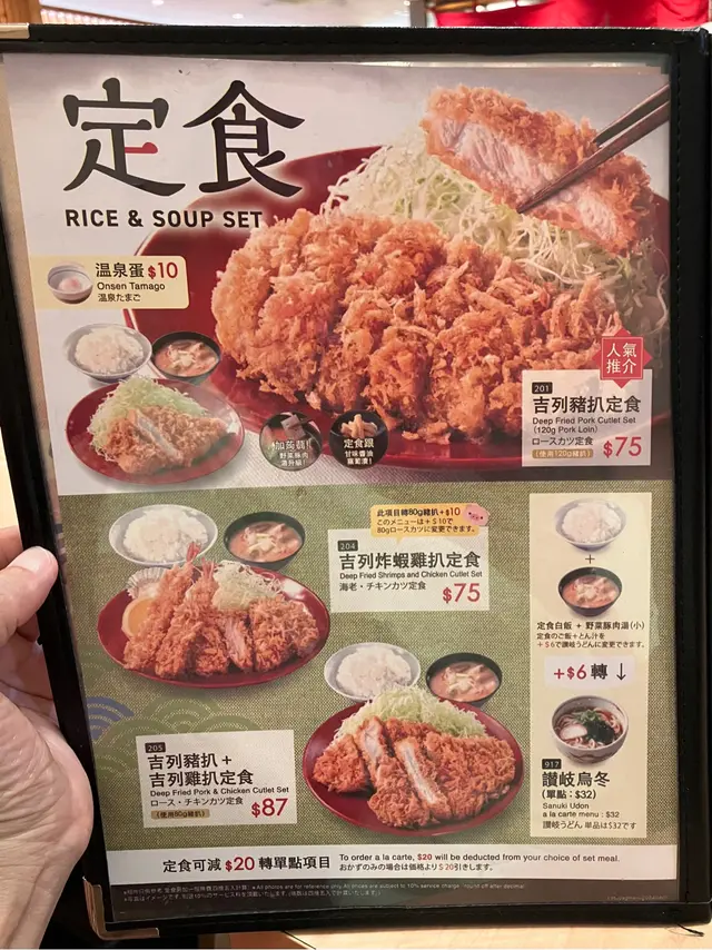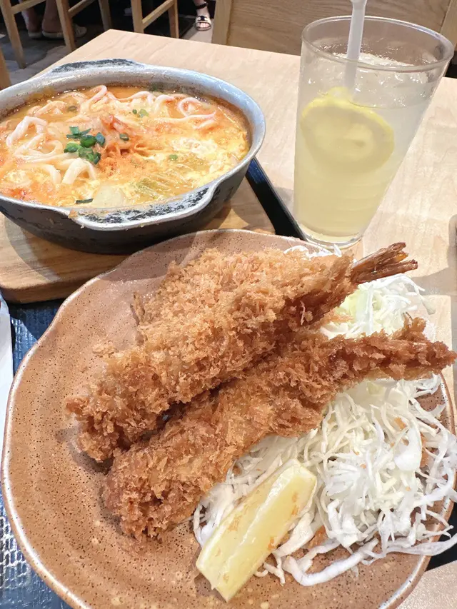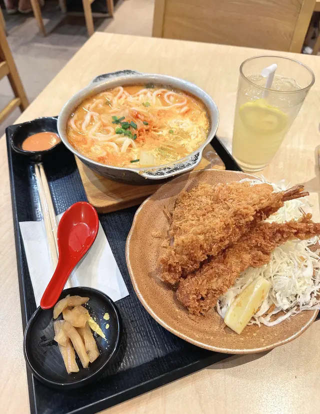 一直好鍾意食日式吉列豬扒,但香港無乜餐廳做到夠鬆脆,今次嚟到吉豚屋,估唔到佢嘅吉列炸物做得幾出色!.我哋叫了2個吉列豬扒 + 炸蝦定食。食物都幾快上檯,炸物熱辣辣仲炸得好鬆脆,真係即叫即炸。.定食配有甘味醬油蘿蔔漬,酸酸地又爽口,幾開胃的前菜。.炸豬扒好大件,外表好鬆脆,炸粉唔厚,豬扒都幾厚肉,做到有肉汁唔乾唔鞋;配埋酸酸甜甜的豬扒醬,好 match 好好食!.炸蝦有2大件,一樣係薄炸粉、好鬆化,蝦肉好厚好爽口,配埋沙律醬好好味😋.另外亦大讚呢個定食有好多菜!有半碟咁多!沾沙律醬食解油膩一流。.佢個野菜豚肉湯亦好好飲,唔會得個「死咸」嘅味精味道,飲得出有蔬果嘅鮮甜味。個湯有豚肉、洋蔥、紅蘿蔔、薯仔同蒟蒻一齊煮,難怪咁鮮甜!👍🏻.飲品方面,我哋叫了柑桔檸檬特飲及巨峰乳酸特飲。2杯都唔會太甜,幾好飲。…查看更多