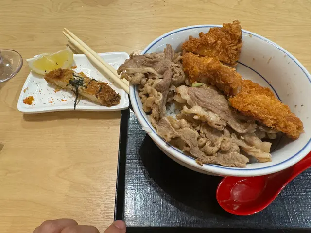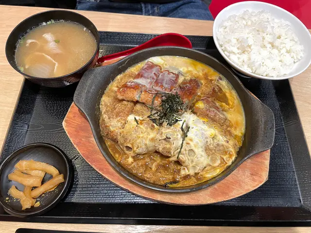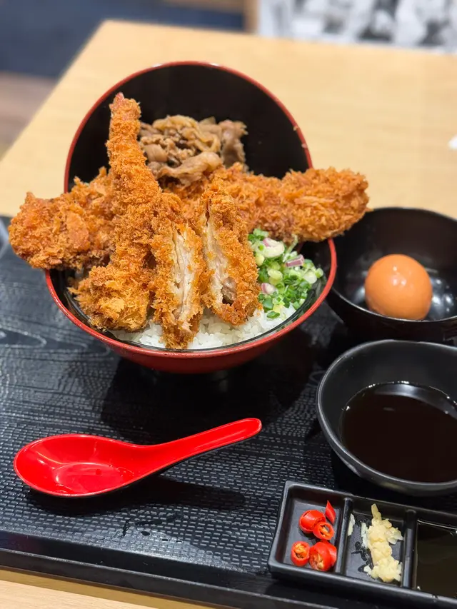 呢一日去咗葵青劇完睇《金池塘》,之後就去咗葵廣蕩。原來呢度有吉豚屋,又咁啱有一人位,於是我就坐定定食返一餐。好多客人,店員都好忙下,好彩有QR code落單,自己可以慢慢黎。見到宣傳menu有個吉列相僕井,咁我就試呢個。個飯黎到真係嚇一跳,沒想到咁大碗。入面有牛肉片有雞扒有炸蝦仲有塊巨型炸魷魚!真係食到好熱氣!炸野下面有彩有一大堆生菜絲!!隻溫泉蛋就係另上,自己打蛋。跟餐升級要咗碗野菜豚肉湯,好飲,入面超足料,好滿足!原來呢度都有凍檸樂,啱晒香港人口味呀!整體黎講都好滿意,一人位都有齊醬料,唔駛舉手麻煩職員。唯一要留意就係只係收現金同八達通,同埋多人的話要等耐啲位。查看更多