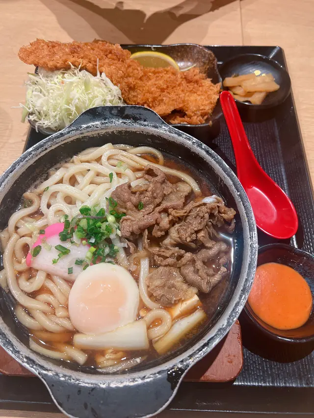 行完葵涌商場諗住同朋友坐低食吓嘢,見到呢間餐廳有得食壽喜燒牛肉烏冬就好想試吓!叫咗個壽喜燒牛肉烏冬拼炸魷魚,仲有埋隻溫泉蛋😋呢個餐仲包左杯飲品!一嚟到見到份量都幾多,啲烏冬入晒啲壽喜燒汁好好食,牛肉都唔肥Yummy!炸魷魚就一般般,係坐低食飯傾吓計嘅好地方,下次都會再嚟!♥️查看更多