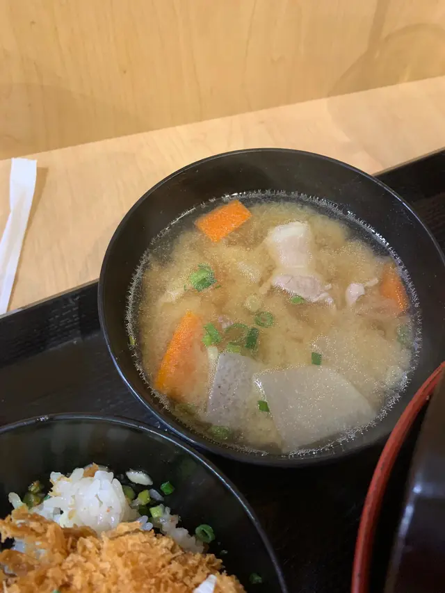 炸蝦天婦羅脆漿太厚,內裡的蝦肉則是史上吃過最幼的,於是就似是吃炸麵粉,幾乎吃不出蝦肉。唯一的優點是,這是出菜最快的一道菜。滑蛋炸豬扒飯飯煮得太淋太軟身,似是煮飯時水下太多,影響口感,這白飯真的不是太好吃。滑蛋份量極少,豬扒炸得不脆,這招牌菜實在不太吸引。豚肉麵豉湯(大)因為很少本地日式料理店有豚汁賣,其實我是特意為了這個才來這間店。而它的湯其實非常足料,用的是位置比較好的豬肉片,可以一塊一塊吃下肚,遠遠優勝於另一家日式連鎖店的100%白花花豬肉肥脂粒麵豉湯,完全不能吃還要得逐塊挑出來。但再足料我都只能給三星,因為真的過咸了,估計是鹽下多了,要不就是用了過咸的麵豉醬品牌,所以我是挺失望的。浪費了一窩好料。查看更多