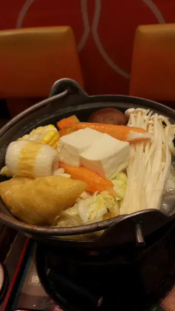 在外吃一個烏冬也差不多這個價錢 我這樣可以邊打邊爐又可以吃牛肉烏冬 抵食啊本打算點全新Shabu Shabu海の幸鍋(牡蠣海鮮鍋) 豈料已售罄 不打緊 我也愛吃芝士竹輪卷鍋+日式雪濃湯底鍋內的配料也差不多是這些 我特別愛吃仿蟹柳 我把蟹柳放至最後才享用 差點就散了新的湯底(日式雪濃湯底)我並沒有很喜歡 反而喜歡吃濃湯湯頭一般般 但食料略勝一籌 娃娃菜是最好吃的打邊爐食材 煮到熟時 軟腍腍的 配著牛肉汁吃 最正 芝士竹輪卷也是最好吃的 要很小心燙口 在內芝士會燙傷口 栗米冬茹冬茹在濃湯內吸著湯汁最好吃 不過我的湯底並不適合 拿了點辣椒 湯底轉換了友人的濃湯 放下烏冬 這是一絕的美味 辣椒不算很辣 但配上烏冬剛好