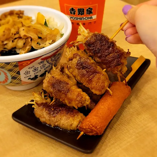 今日去咗灣仔行街,見到附近有一間吉野家就入咗去,中午嘅時間就算一個人都可以好快可以搵到位,好方便。環境都唔錯,唔算多人排隊買完飯都仲可以慢慢坐,睇咗好耐買咗個雞串豚肉飯,啲肉都算軟身,而且好易入口,好好食。另外配搭一串豚肉,真係有啲特別,而且仲有幾片薄嘅洋蔥,同任食的红彊送飯,唔夠汁可以再另加牛肉汁,唔錯唔錯。不過個飯粒有少少硬身,差啲。但係整體你講30蚊一個午餐,真係好抵而且仲有可樂送,雖然叫咗少冰,但係都有好多冰。下次再去食火鍋。查看更多