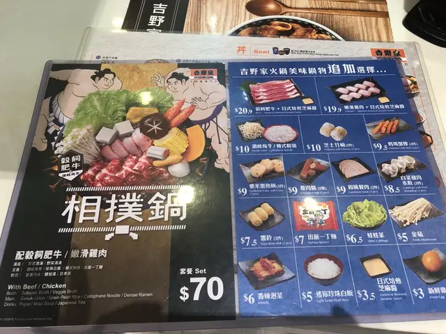 6:45pm到左APM 想找d經濟實惠的晚餐吃,諗到吉野家,好即刻去🏃🏼‍♀️🏃🏼‍♀️🏃🏼‍♀️,但都9成8的座位坐滿,好好彩,見2人前座位有人走,即時有位。火煱有兩種,一個相樸煱,一個蕃茄蜆煱。最後決定兩個人一個相樸煱,追加其他食物。追加了午餐肉,餃子,菜,嚮玲,牛肉,粟米餅。原來多過$130,汽水免費升大杯庒👍🏻👍🏻選擇濃湯,二個人都好飽,抵食👍🏻👍🏻👍🏻查看更多