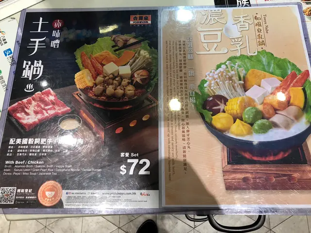 🎀熊妹去左觀塘探莎莉🐥同b女big mac🍔,就輪到熊大呢隻飯腳出場喇。📍又過新一年,喜慶節日🎉咁開心,天氣又寒冷❄️,直情岩哂shabu shabu 🍲喇!📍每逢冬天🌀,《吉野家》打邊爐♨️不嬲都大受歡迎👏🏻,熊妹係《吉野家》邊爐的忠實粉絲,每年都起碼會打一次。👅📍而apm分店近排仲裝修左一番🛠,感覺光鮮💡同多位左,因為加設左個大bar枱有好多1️⃣人座位。📍原來仲新加左自助醬料區,有打邊爐用的週調味料,豉油,七味辣粉,蒜蓉,生蔥,炸蒜同埋火鍋用的湯底,完全係專設給打邊爐用的食客。📍熊妹記得以前係要舉手🙋示意職員加湯🥣,而家所有野都自助化,想加幾多就幾多,又幾好喎,但熊妹認為這樣食客會無限制咁免費自取添加調味料🧂及湯底🍵,不會反而增加食物成本🔝嗎?熊大話咁樣慳返好多人手成本💰,會遠超過軀軀少少調味粉的成本喎,公說公有理🤷🏻‍♂️,婆說婆有理🤷🏻‍♀️,真係只有《吉野家》先知道真理。店員說最新《吉野家》打邊爐就得呢兩款,一款主打蠔的赤味噌土手鍋,$72同一款主打豆乳的濃香豆乳鍋,$69。:)一個套餐包一個鍋,配料可選牛肉🐮或雞肉🐣一份,主食可選烏冬/珍珠白飯/韓式粉絲/出前一丁,飲品可選汽水/日本茶/麵豉湯,汽水🥤係加大版架。仲可以額外加錢💵追加其他火鍋配料,價錢係十分便宜,$10以下有交易,比較驚喜係有響鈴🔔,水餃🥟,墨魚餅🦑。📍由於熊大同熊妹都唔喜歡食蠔的,一致認同選擇豆乳鍋,熊大的轉湯底要日式濃湯,咁咪試齊兩款湯味囉。濃香豆乳鍋,$69📍熊妹喜歡豆乳鍋🍲,感覺好健康又營養。豆乳鍋有齊🍢芝心丸,菠菜丸,日本魚蛋,蟹棒🦀各兩件,一片粟米🌽,一件冬菇🍄,一件豆腐,一件腐皮同兩件雞肉🐤,仲有一堆娃娃菜🥬,金菇,材料係非常豐富及多元化,有齊所有食物的營養元素,一個人食完全有突。配菜熊妹揀左雞肉,一來鐘意食雞,二來熊妹成日認為《吉野家》肥牛真係好多脂肪,好肥,熊妹唔鐘意肥。然後,熊妹揀了粉絲為主食,洽落湯鍋內煮濃去,索哂啲湯汁真係好好味。另外,熊妹仲額外加$6.5叫多一兜娃娃菜,熊大成日食街外飯,要食多啲菜先健康!熊大其實知道係熊妹鐘意食菜🥬。日式濃湯鍋,$65熊大的就係日式濃湯鍋🥘,配菜就揀了火鍋最愛的肥牛,唔肥唔食。主食竟然放棄了米飯🍚而選了烏冬🍜,難道飯桶🧺今天已裝滿了飯?其實《吉野家》出幾多款新調製的湯底,熊大同熊妹都認為日式濃湯係最好味,甜甜地味道夠濃之餘同火鍋配料又好夾,唔會蓋過火鍋配料本身的味道,有時有啲新口味湯底同火鍋配料味道唔係好夾,怪怪的。📍冬天☃️真係好多人食《吉野家》邊爐,一眼望過去,成行都係打邊爐🍲加汽水🥤,食完成身暖哂☺️,熊妹係會繼續支持的。💪🏻查看更多