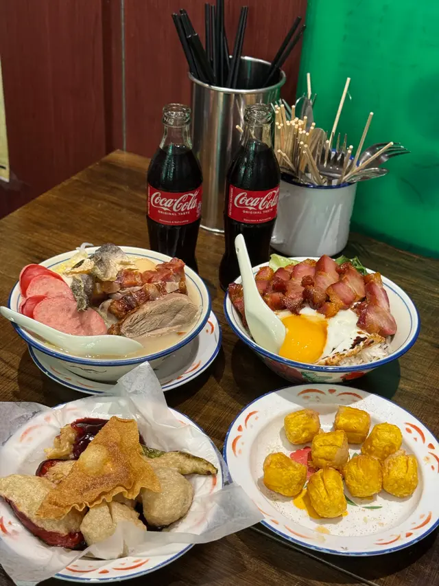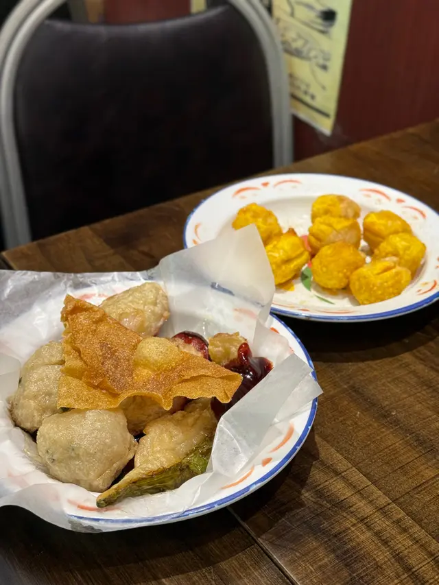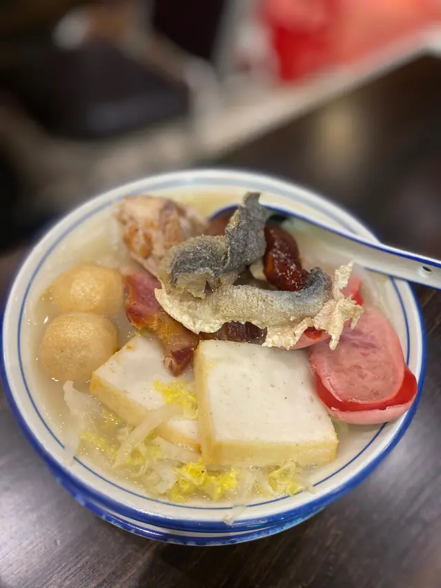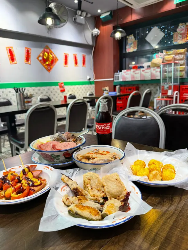 九龍城不只有泰國菜,還有本地懷舊主題的小食店。放工後邀請住在啟德的朋友一同到一間充滿著地道特色,兼有懷舊色彩裝潢的小食店 - <同撈同煲>吃晚餐。進入店內,服務員婆婆很親切地招待我們,著我們不用急慢慢看餐牌和點餐。食物種類很多,炸物、餃子、雲吞、台灣特色小吃,還有艇仔銀針粉等。我們點了炸芝士豆腐磚、台式套餐、上湯韭菜餃和招牌大小姐艇仔銀針粉 。炸芝士豆腐磚~既精緻又可愛的炸芝士豆腐磚,一小口,混合魚肉和芝士的豆腐磚,味道很配又好吃。台式套餐(有炸香酥雞半份、千層拉餅和熱豆漿)~香酥雞粒炸得外脆內軟,保留雞肉滑溜;千層拉餅餡料是白蘿蔔絲、外層金黃香酥,內餡帶有清甜味道;一樽温熱豆漿充滿濃郁豆味。上湯韭菜餃~韭菜餃份量很充足,毎一口都能吃到韭菜和豬肉,湯底也好喝。招牌大小姐艇仔銀針粉~吃著這碗招牌大小姐艇仔銀針粉,讓我想起兒時媽媽煮的銀針粉,加些菜、蝦米、魚片一同煮,簡單又美味。艇仔銀針粉材料很豐富,有燒鴨、叉燒、魚蛋、魚片、紅腸、炸魚皮和娃娃菜,毎份配料都有兩件。銀針粉又稱老鼠粉,滑溜彈牙,吃時要特別留神,好像老鼠很快溜走。😄 豐富配料帶出鮮甜湯底,果然是招牌菜。…查看更多