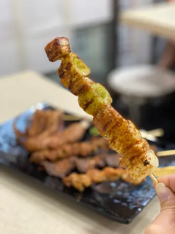 家附近有兩間串燒,對比下,雖然這間只有4張枱,價錢亦較貴,但質素較高,所以愛食串燒的我家,通常都會來這家「名串王」👍燒雞泡魚乾每次上台都熱辣辣,又燒到剛剛好,圖片完全表達了很好食串豆腐第一次叫,發現Overcook左,口感脆脆地串燒雞軟骨雞軟骨肉較多,外脆內軟京蔥豬頸肉厚燒豬頸肉粒配上京蔥,一口咬下去好多汁流晒出來,原來京蔥也可以成為主角🤤燒牛舌雖然還有肉汁在,但是有少少乾雞腎燒到十分入味,味道好香原條燒茄子配上芫荽及蔥花,為茄子調味,更顯得茄子色香味俱全。燒金菇/燒韭菜不敗的神話😂😋😋😋