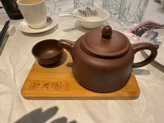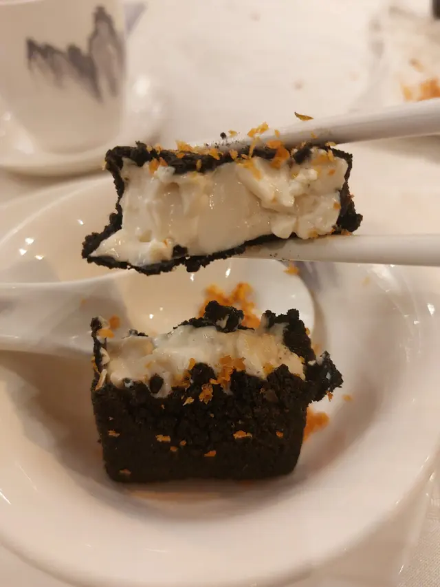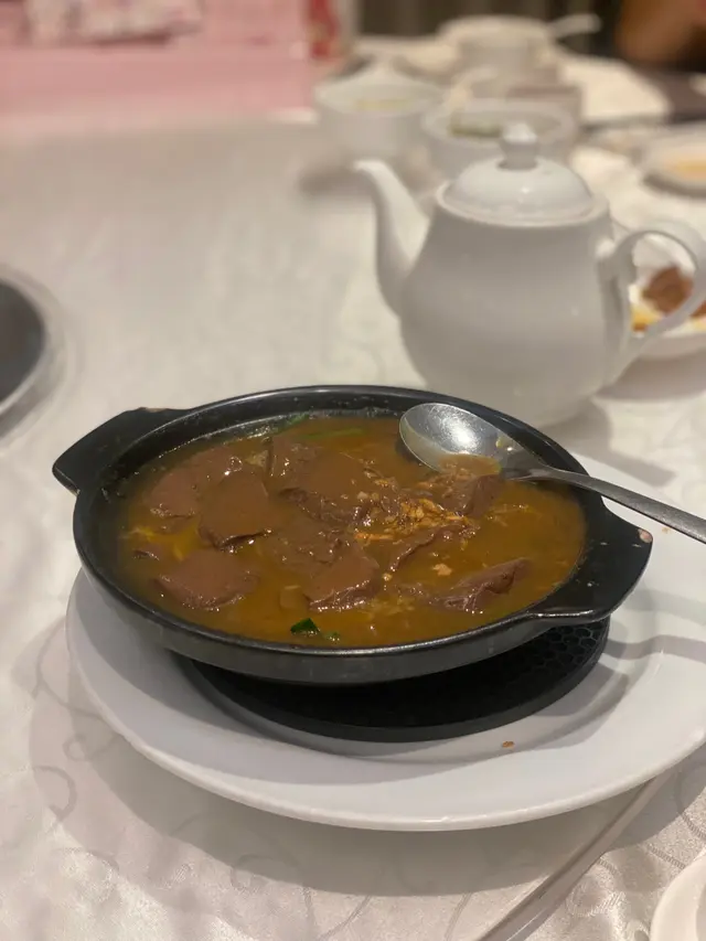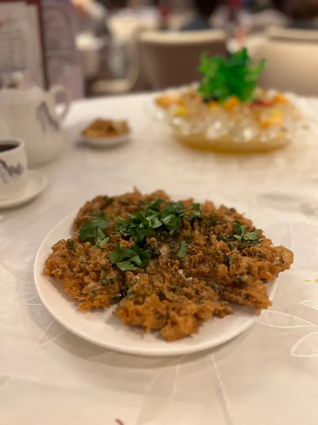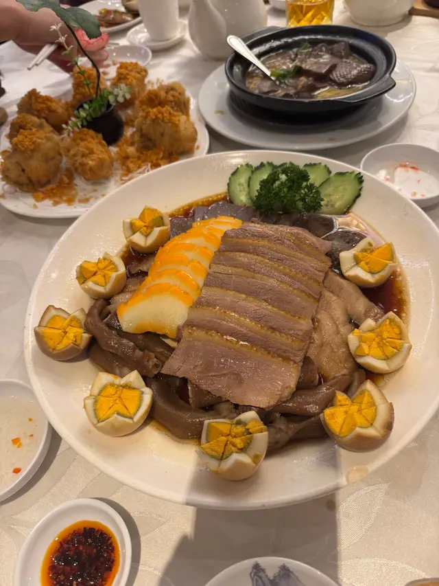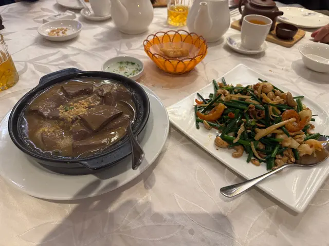 竹炭脆豆腐(2件) -竹炭粉混合脆漿油炸,烏黑酥脆帶顆粒感外脆内嫩反差感惊艳 油温控制極佳不易回軟拍照打卡神器(暗黑料理風)竹炭味較淡 主要靠視覺冰鎮南非鮑魚(2隻)拼海蜇 -冰鎮後肉質緊實彈牙 帶有淡淡的花雕酒香鮮甜味自然 -海蜇口感爽脆透亮無雜質 咬落嗦嗦聲 厚切蜇頭配秘制麻油,脆度堪比新鮮黃瓜杏汁燉豬肺湯 -湯色乳白湯色乳白帶琥珀光 表面凝結 杏仁衣 勺起掛壁如蜜糖 先嗅後飲 第一口 杏仁濃香席捲鼻腔 余韻 喉頭回甘帶輕微杏核苦香姬松茸燉雞湯 -松茸的木質香氣攻佔鼻腔 雞油與菌汁的鮮甜開始擴散 喉頭湧現蜜棗般的回甘滷水鵝肉拼鵝翼 -鹅肉 纤维分明渗出琥珀色卤汁 吸卤透彻 表层卤香渗透肌理 蘸 潮州辣椒油 提升味蕾层次 -鹅翼 皮滑骨香,胶质丰富 骨缝溢出卤香 吮吸骨缝中藏有卤香髓汁,翅根肉最厚实 -鹵水中南姜、八角、魚露的復合香,無刺鼻醬油味 入口甜→中段咸鮮→回甘帶藥材香名人小炒皇 -食材堆成小山,油光閃亮 腰果金黃、鮮魷捲曲外微焦內彈牙韭菜挺立不塌、蝦乾海鮮咸鮮、銀魚仔咸香脆口芋絲爽脆、菜脯脆爽 超級送酒送飯乳鴿 -皮脆 但肉不算嫩有點乾身 藥材味濃米湯杞子浸時蔬 -普通上湯白菜仔 湯底偏咸招牌撈麵(少辣) -蝦米仔蝦籽再加上潮州辣油 咸香味俱全但略嫌過咸…查看更多