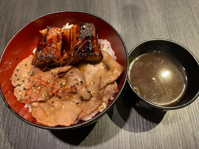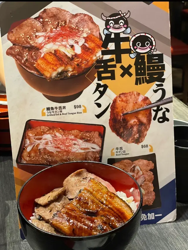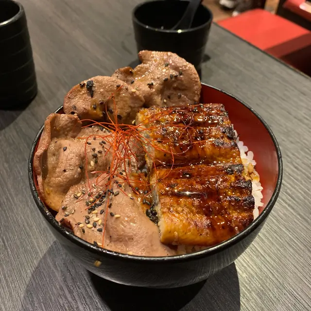 來吃日牛,看到了隔壁的這家突然想吃鰻魚飯,吃完後真的很後悔進來…🌟鰻魚牛舌丼 💰98鰻魚丼68,由此估計這幾片牛舌要30🥲鰻魚烤焦的地方都苦了,米飯和鰻魚各論各的,真的還不如去一田買鰻魚再配個飯。牛舌還可以🌟炸雞 💰48不是那種裹麵粉炸的,朋友說趁熱吃有姜味,勉強可以🌟薯仔芝士年糕 💰38熱乎軟糯,好吃的熱量炸彈還有,店員沒有給我們上配套的小菜,只有湯,還是隔壁桌提醒我們的,體驗太不好了,不會再來查看更多