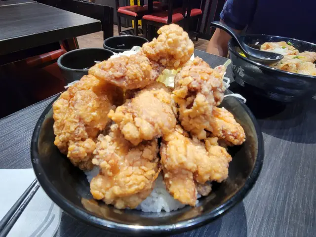 本來想試隔離嘅上海菜,呢小兒堅持去呢到食,作為寶媽寶爸,我哋當然就佢啦。點咗:香蒜豚肉飯 (L, $68):啲飯好香牛油蒜香味,基本上每粒飯都沾到個香蒜汁,好惹味。豚肉就正正常常,冇咩特別。L size真係好大碗,飯多料多,包食飽。炸雞飯 (M, $78):唔太記得個名,好多炸雞,新鮮滾熱辣上枱,雞肉唔怕嚡口同乾,就係正正常常咁嘅味道,冇特別驚喜。兩大一小,兩碗飯已經好飽了。餐廳唔算坐得舒服,雖然都有sofa位,但枱與枱之間嘅距離唔闊。查看更多