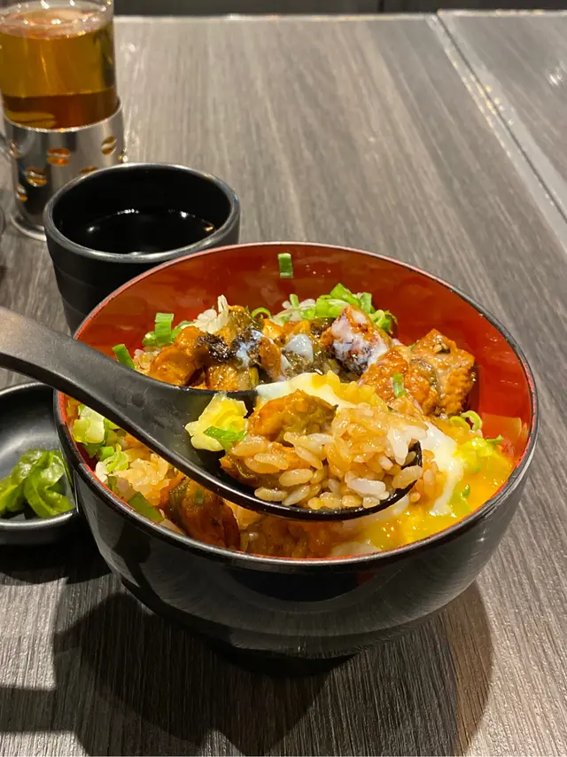想當年一開嘅時候 排到天荒地老先有得食諗住等熱潮過咗先食 點知之後就完全唔記得咗😂😂😂依家竟然連lunch time都唔使排隊好多鰻魚嘅選擇仲有明太子電話落單 除咗走蔥 可以揀多飯少飯 多汁少汁 又幾細心和風牛肉鰻魚丼 $88牛肉係用碟仔另上 唔會同鰻魚汁溝埋一齊 幾好幾好鰻魚飯有啲失望嘅:(飯煮得有啲爛🤯就算嗌咗多汁 都唔係好夠撈飯同埋個汁唔係好有味鰻魚都燒得幾香 但好多骨🫣牛肉有啲surprised 份量好多 幾大塊而且都幾入味 又唔嚡送赤味噌湯及漬物 都係無乜特別😶鰻魚肝串 $28無乜內臟嘅腥味☺️質感有少少似雞肝唔知係咪因為燒過呢🤔依個嘅鰻魚汁好好味 好濃郁又有啲甜比鰻魚飯嗰個出色好多明太子芝士玉子燒 $58不得了🥹好香好厚好嫩滑嘅蛋蛋入面有芝士 面頭係明太子醬鹹鹹香香 依個combination邊有得輸明太子溫泉蛋烏冬 (冷) $78烏冬質地幾彈牙 但係無味嘅😂😂😂兩個主食 兩個小食 埋單$252, 好抵食以鰻魚飯專門店嘅旗號 質素未去到好驚艷但價錢絕對係實恵😂尖沙咀 $8x一個飯 有湯有飯有嘢飲 仲要唔使加一查看更多