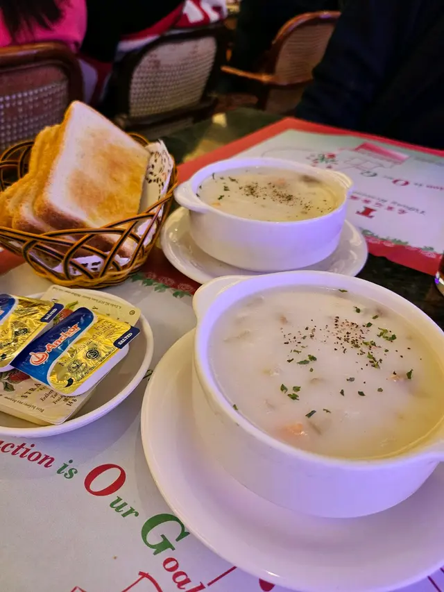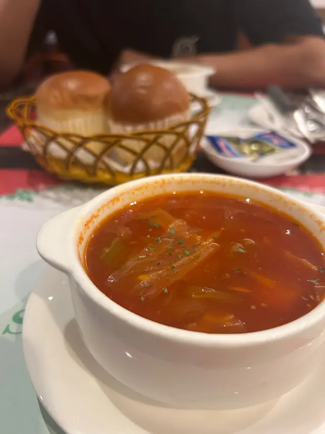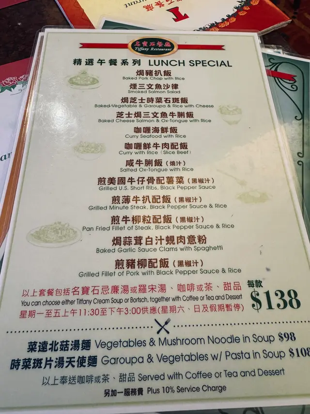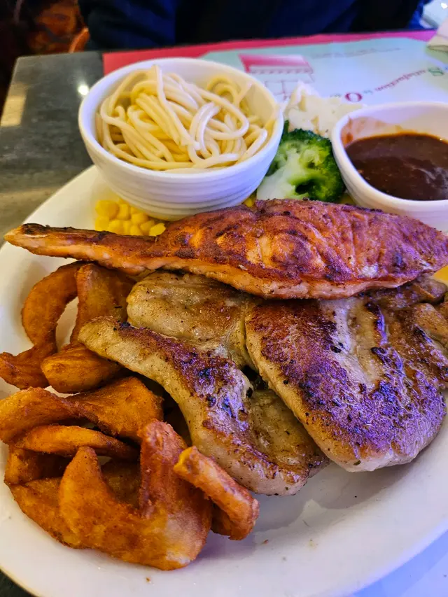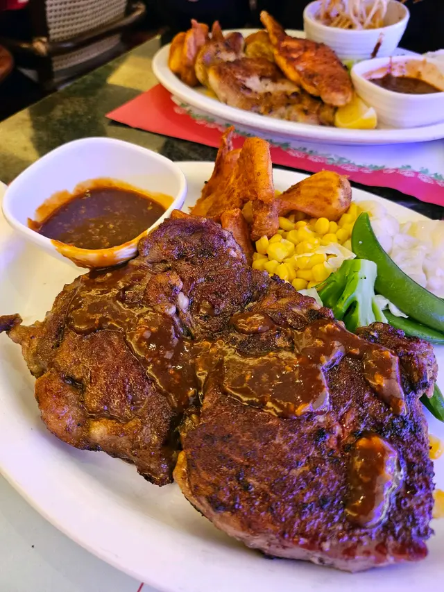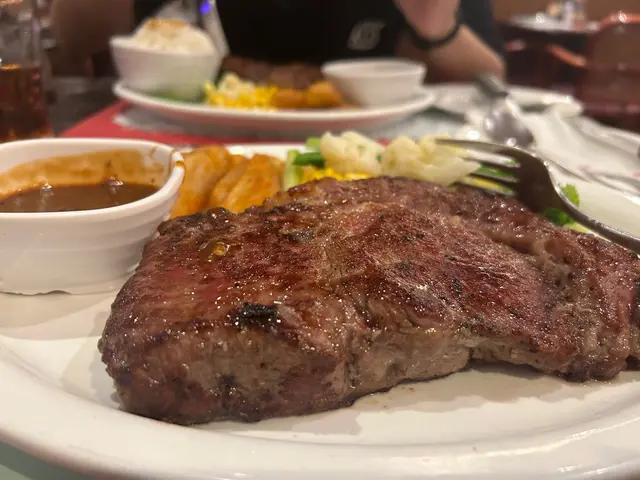 好耐冇黎呢間餐廳開餐喇,咁啱今次約朋友一齊來,又可以食餐飽。呢間餐廳長期都好多人,好彩今次訂左枱,唔係唔知等幾耐先有得食。煎肉眼牛扒(午餐)肉眼牛扒超超超級大份,叫左5成熟,煮得啱啱好,唔韌又有牛味,可以自選配黑椒汁或蒜蓉汁。扒大蝦王伴黑椒牛柳上次食過覺得好好食,今次encore,不過今次隻蝦乾左d,又細隻左。牛柳反而有驚喜,都係5成熟,好淋好香好好食,份量都唔少,食完超飽。呢到最好之處,係跟餐都會有麵包,餐湯,飲品同甜品。餐包好香好軟熟,成日都好想食多一個。紅湯同白湯兩款都好足料,濃得黎唔咸,加少少黑椒粉超好味,兩款都好想飲哂去。飲品可選凍熱飲,正常發揮。甜品就有啫喱同芒果布甸揀,次次都會揀芒果布甸,雖然芒果味唔係話好重,但勝在唔甜,布甸又滑,食完剛好作為一個完美既ending。…查看更多