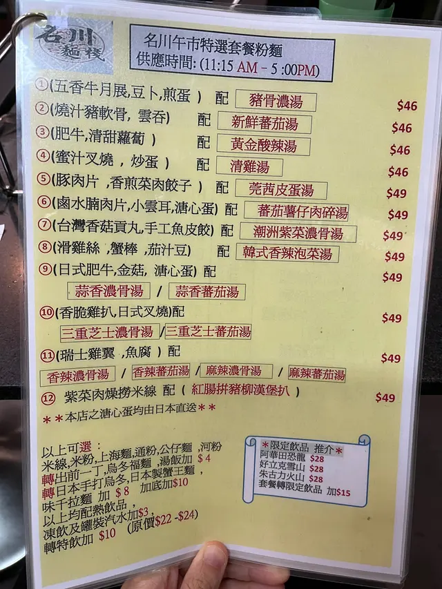 名川麵棧 (元朗) 網址: https://s.openrice.com/QrbS0sfG000 地址: 香港元朗同樂街2-8號金寶大廈地下D號舖 電話: +852 28663698