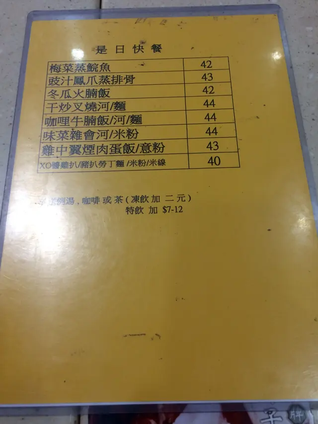 行過佢哋門口開始落雨,原來係百年一遇大暴雨來臨,門外見餐牌有梅菜扣肉飯$50凍飲加兩蚊,有懷疑,咁平!落雨天留客,入去試試啦!同扣肉初次見面有驚喜,真係梅菜扣肉,唔係嗰啲梅菜“瘦”肉,仲係飯餸分開,居然有唔少份量學斗墊底,梅菜夠香冇沙,扣肉腍化唔係柴,呢個價錢超值,唔夠喉要多個節瓜粉絲蝦米$62,可能覺得細咗,味道好,冇煮一擗嘢,廚房師傅有料到,環境就普通,唔係而家嗰類茶餐廳大光猛裝修,最鍾意係冇櫃桶檯,唔使食餐飯都撞到膝頭,獨食,撐檯腳,小家飯都啱使,要再試下其他菜式,希望做到飯堂。…查看更多