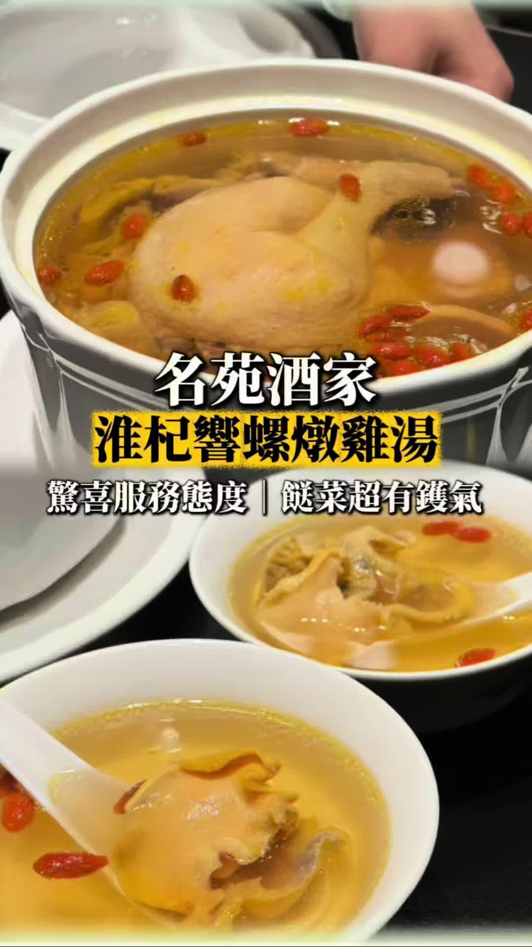 啟德食中菜,位於啟德零售館的中菜館「名苑酒家 」近期好多朋友推介,質素高好抵食,而且定期推出不同優惠,超級鍾意食中菜嘅我,今日咁啱去嗰邊行街,梗係要試吓👍不得不讚吓呢度服務極好,例如會主動幫你斟茶,冇水即刻幫你加水,我哋飲湯嘅時候,會提醒我哋小心熱,觀察我哋飲晒之後即時幫我哋加湯,特別深刻係燉湯有好多可以食得嘅湯料,例如成隻雞髀、瘦肉,我哋食唔晒冇諗住帶走,店員鼓勵我哋唔好嘥咗佢,放喺雪櫃呢兩日加熱就可以食,令我都覺得唔可以浪費,真係好用心對待客人👍👍▪️紅燒脆皮乳鴿 $ 68乳鴿炸得金黃,皮脆肉嫩超級Juicy,鹹香惹味,沾上淮鹽和喼汁,更有風味▪️必點孖寶|淮杞饗螺湯拼咕嚕肉 $ 268✨菠蘿咕嚕肉咕嚕肉外脆內軟,肉質半肥瘦啖啖肉,爽口又彈牙,山楂酸甜汁調味恰到好處,酸甜味道非常開胃,伴上菠蘿、新鮮青紅椒,送一口白飯超滿足✨淮杞響螺燉雞湯燉湯非常足料,足夠四五個人分享,用上鮮雞、響螺、瘦肉清燉再加上杞子,味道鮮甜到不得了,湯料沾上醬油都非常好食!▪️XO醬金蝦啫唐生菜 $ 88超有鑊氣用瓦煲上枱熱辣辣,用XO爆炒生菜夠晒惹味,而且仲有大大隻蝦乾,味道恰到好處▪️椒鹽魷魚鬚 $ 72小食價錢主菜份量,真係超抵食,魷魚條條肥美飽滿,最喜歡炸槳好脆口,但一啲都唔油膩,口感彈牙,酥脆可口▪️最後店家奉上番薯糖水作為甜品,糖水超香薑味,番薯溏心甜味…查看更多