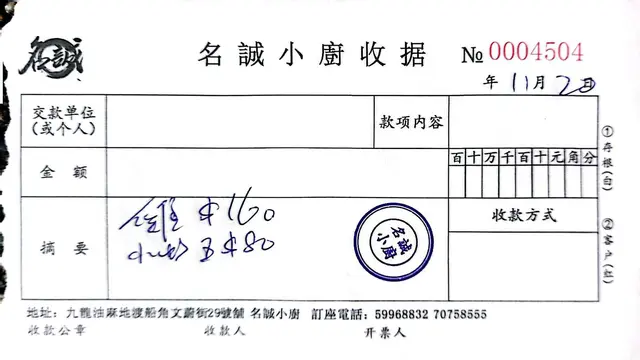 名誠小廚 (佐敦) 網址: https://s.openrice.com/QrbS03AqD00 地址: 香港佐敦文蔚街25-32號文耀樓地下29號舖 電話: +852 70758555