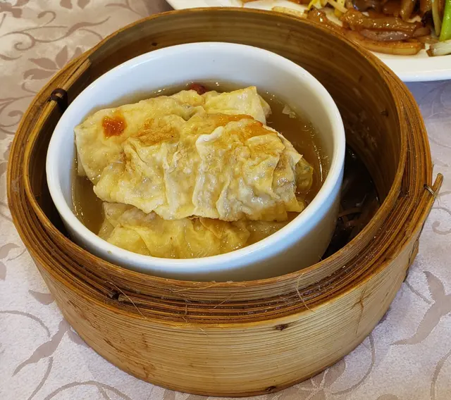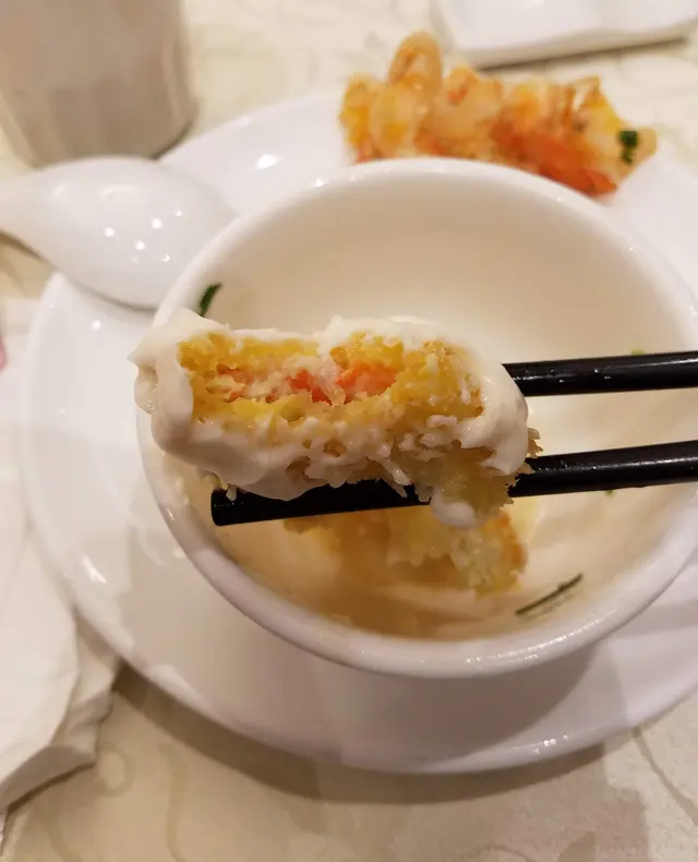 到了做冬時節,今次選擇在市中心的酒家聚餐,並預訂合家歡全包宴,每席$2888,同時也包了十二罐汽水,亦可選擇啤酒。酒家可以劃分最少兩間或以上的貴賓房,但酒家的總面積較細,所以坐滿人客後聲浪也有限。上湯焗海蝦伊麵底海蝦大隻新鮮,上湯伊麵味道適中偏向清淡。沙律海鮮卷熱騰騰炸起,雖然是加了沙律醬,但味道也是清淡的。彩芹帶子鮮魷炒得不錯,帶子熟度剛好,鮮魷也同樣柔軟好味。紅燒海皇翅店員已分好一碗碗放在轉盤上......用料算是豐富,有少許份量的翅,湯汁淡淡。清蒸沙巴龍躉蒸的時間長了一點,所以過熟,某部份的魚身不太嫩滑; 有鮮味,全條都吃掉了。拔絲菠蘿咕嚕肉咕嚕肉外表很美,件頭也不細,灑上少許芝麻,味道清淡不油膩。咕嚕肉雖未有拔絲的效果,但有拔絲的光澤外表。菠蘿新鮮,肉厚,酸酸甜甜幾好味。蠔皇花菇扣鵝掌生菜底鵝掌非常大隻,無論是鵝掌或是花菇,都大隻入味,食得好開心!名軒一品燒雞燒雞新鮮,可以聞到燒雞香味,嫩滑,調味最好! 因為之前的每道菜式都較清淡,這燒雞令人精神為之一振!金瑤海皇炒飯炒飯轉回清淡口味,可以與燒雞一起吃來平衡一下,幾好味!精美甜品 甜品是紅豆沙,紅豆沙有蓮子,但欠缺陳皮及甜度調較,令紅豆沙欠缺了精髓。酒家的合家歡菜式有九成以上都有非常少的調味,該入納在少鹽少糖系列。多款菜式中最喜愛蠔皇花菇扣鵝掌生菜,一品燒雞和拔絲菠蘿咕嚕肉。店員爽朗健談,招呼勤快,讓我們渡過愉快的一晚!…查看更多