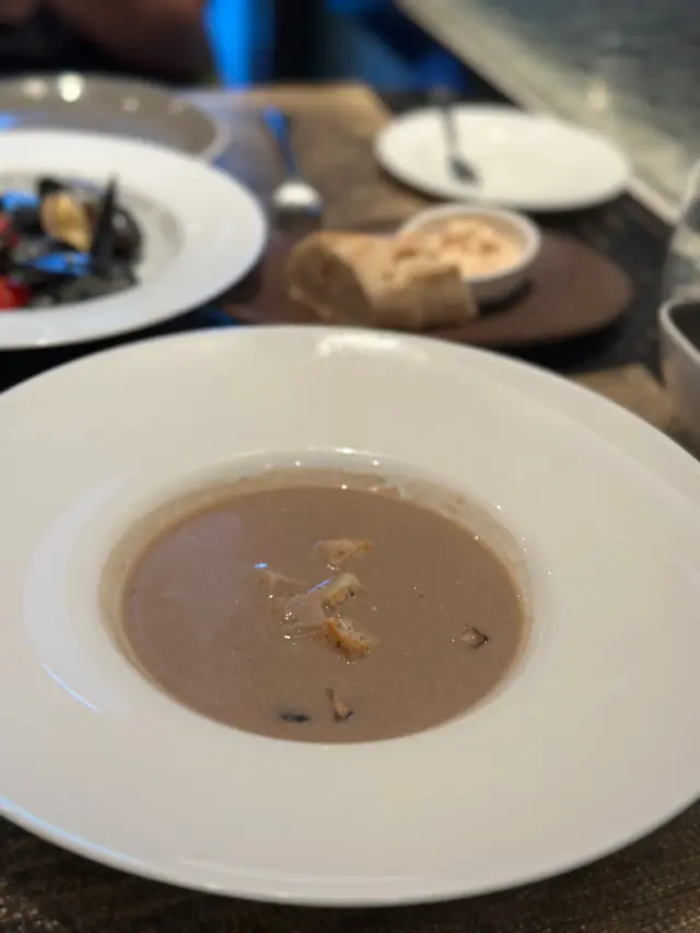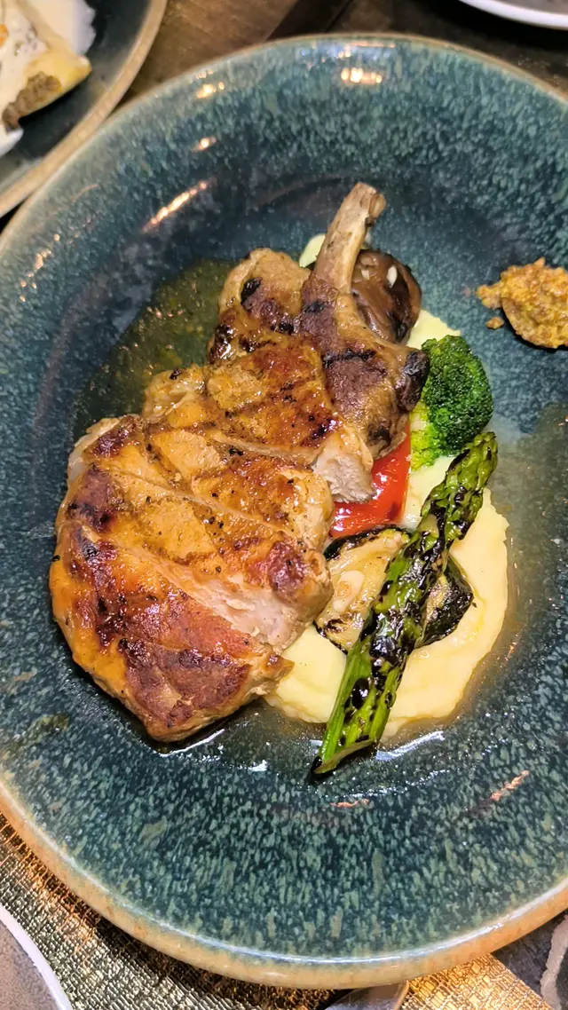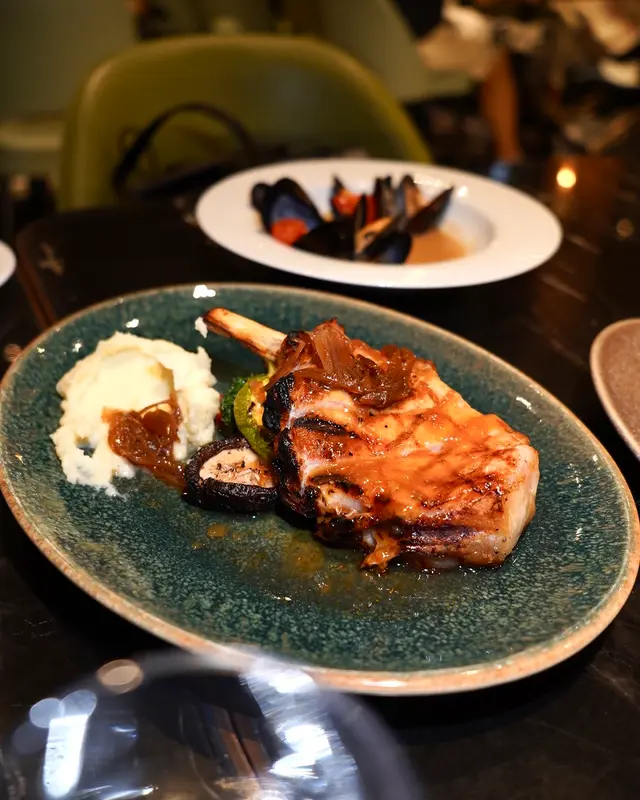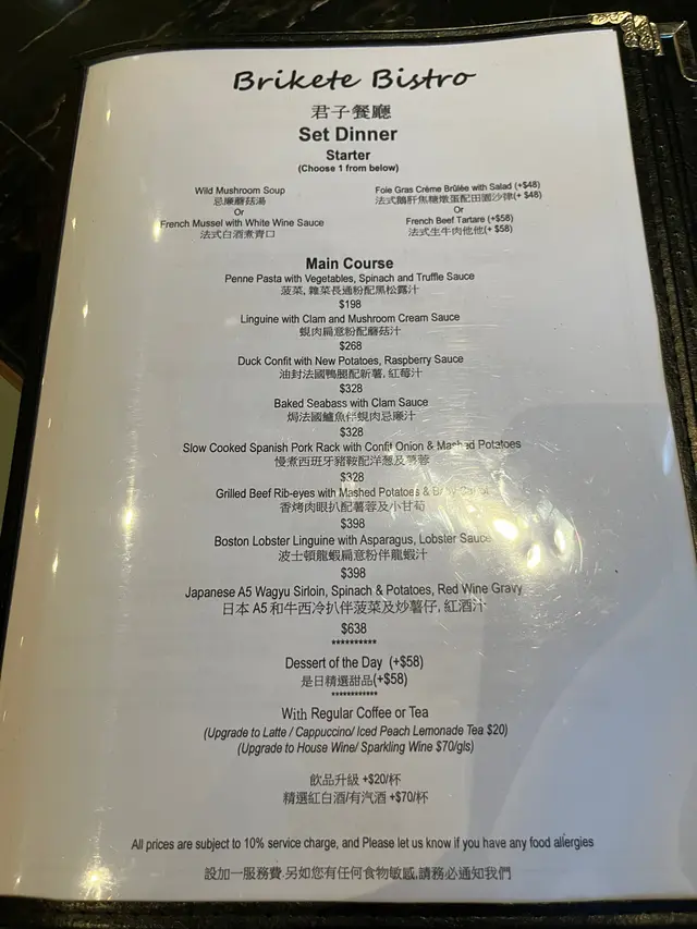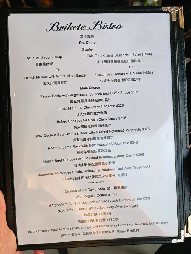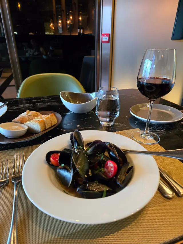 位於北角匯二期嘅呢間法國餐廳,同朋友早左少少入左去坐低,發現坐窗邊嘅座位可以直接睇住個太陽日落,勁好feel。餐廳環境舒適寧靜,座位唔算特別多,坐落舒服。雖然係法國餐,但係set dinner價錢都唔算貴,set已經包埋前菜主菜同飲品。同朋友分別叫左唔同嘅set dinner,前菜叫左忌廉蘑菇湯同埋法式白酒煮青口。蘑菇湯夠滑身,菇同忌廉味都好香,而且都唔少蘑菇粒係入面,多口感幾好飲另外個青口都好食,青口本身夠新鮮,白酒同牛油個味揮發出黎好夠香。青口本身都大隻,所以都幾厚肉同埋個味都夠鮮甜Set Fish焗法國鱸魚伴蜆肉忌廉汁,另外有薯蓉伴底。鱸魚煎到個皮夠脆好香,魚肉本身好夠厚,鱸魚個種厚實嘅口感都好正好鮮。另外蜆肉都大隻,個忌廉都幾濃厚,幾好食Set Pork chop慢煮西班牙豬鞍薯蓉配蔬菜,整體望起上黎已經覺得好靚。西班牙豬本身個肉都係比較香,慢煮出黎好嫩,而且唔油膩。加左少少燒烤醬食起上黎又香好多,另外配菜有D小節瓜冬菇同西蘭花,冬菇個味勁濃好多汁就係咁,同朋友邊睇住日落邊食住晚餐,overall黎講都係幾唔錯…查看更多