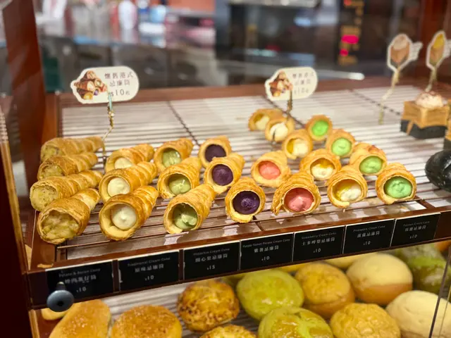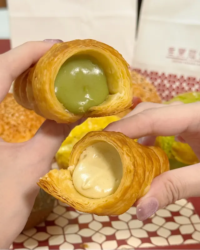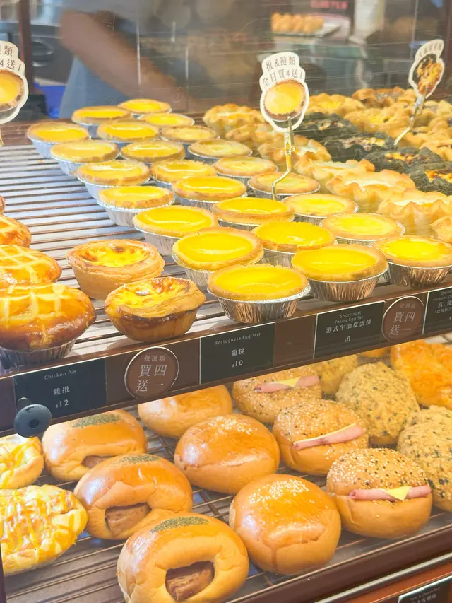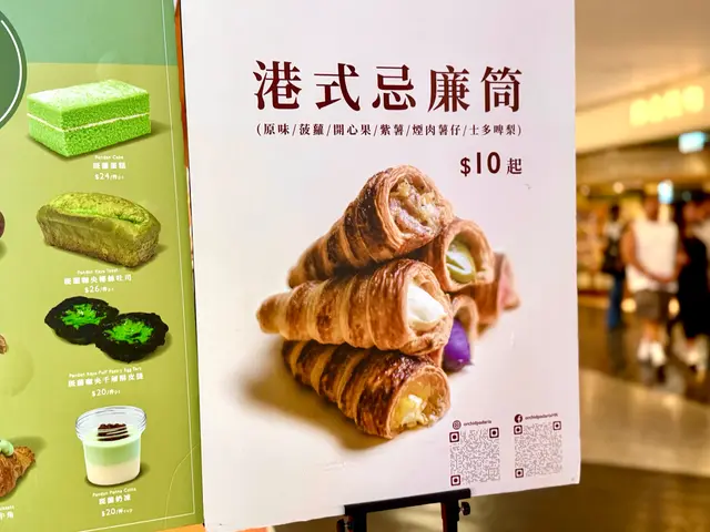 📍「君蘭麵包廠」-尖沙咀麵包店有多款充滿港式風味嘅包點選擇,例如細細個就食嘅忌廉筒、特色菠蘿包,仲有好多新式麵包例如巨大版嘅牛角酥、星星千層撻等,仲有多款精緻港式曲奇可以自助咁夾添😆最近仲新出咗斑斕口味嘅麵包同甜品,今次就試住幾款先😋🍴斑斕咖央千層酥皮撻💰HK$20外層係竹炭千層酥皮,中間係斑斕味蛋漿,內部仲有層流心嘅咖央醬,呢個配搭幾特別😆不過酥皮可以再脆啲就更好😗🍴黑松露雞蛋千層酥皮撻💰HK$18甜嘅千層撻就食得多,鹹嘅又真係好少食,買到去返焗熱佢,黑松露味好香好出,中間雞蛋個層就係全熟較實心,如果可以做到流心就正🤣🍴斑斕芝士蛋糕(小)💰HK$35蛋糕幾濕潤,食落斑斕都幾香,芝士🧀味平衡得唔錯,凍食口感有少少似雪糕添😛🍴斑斕奶凍💰HK$20賣相幾靚幾吸引,上面個層係斑斕,下面個層係奶凍,面頭仲有啲紅豆粒添,不過👧🏻紅豆同斑斕唔算好夾🫣食落口感好滑,整體比較甜😗🍴芒果布甸💰HK$18童年回憶點可以唔試,食落口感一樣咁滑,底部仲有芒果肉添,整體都係比較甜😛…查看更多