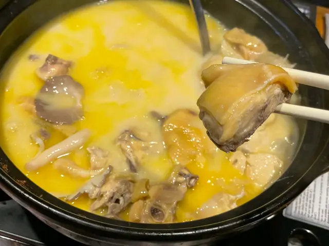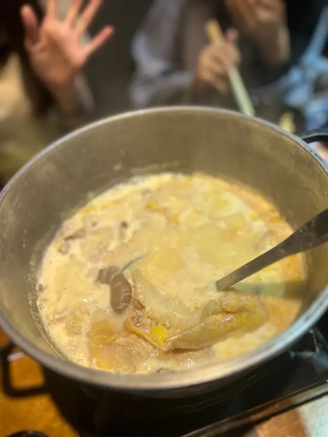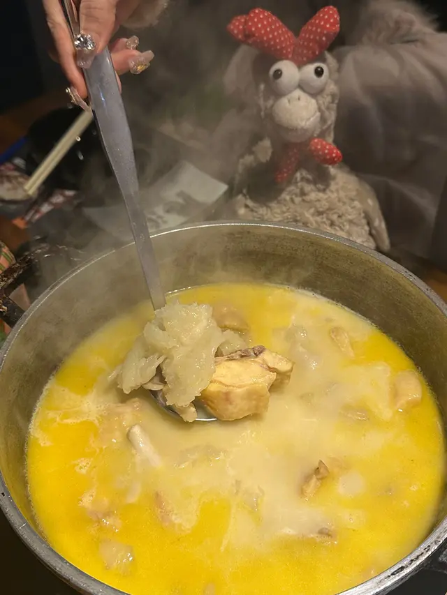 這幾天突然有點冷,所以下班後就決定和媽媽去吃火鍋🍲媽媽說想吃「雞煲翅」,上網搜了一下,就選了這家,可是打了好久電話也沒有人接聽;唯有直接到門市看看有沒有位可能是週五,上到去滿座,但剛好亦發現9:30後有5折(湯底和飲料除外),所以就決定等一下!因為只有兩個人,所以就選擇半隻的「雞煲翅」,雞件滑身,湯底濃郁,都忍不住喝了好幾碗,一試無妨!不過都因為等得太久,有點餓,所以就先下單一個小吃 — 蜆介鯪魚球,外皮微脆,確實不錯而其他火鍋材料如下:竹笙、水魷、芋絲、烏冬、西洋菜、皇帝菜、特級美國肥牛及店舖自創的爆芝響鈴。整體材料新鮮,肥牛不算多油脂,不過口感軟腍;而最為突出是店舖自己研發的爆芝響鈴,淥一下就可以,外面脆脆,內里滿滿的芝士,十分過癮雖然週五店舖比較忙,不過值得一讚是員工會留意你鍋裏的情況,主動幫你加湯,所以服務態度不錯查看更多