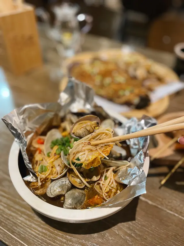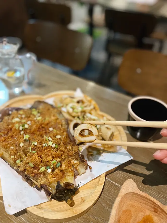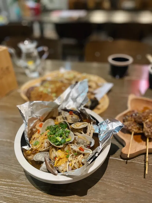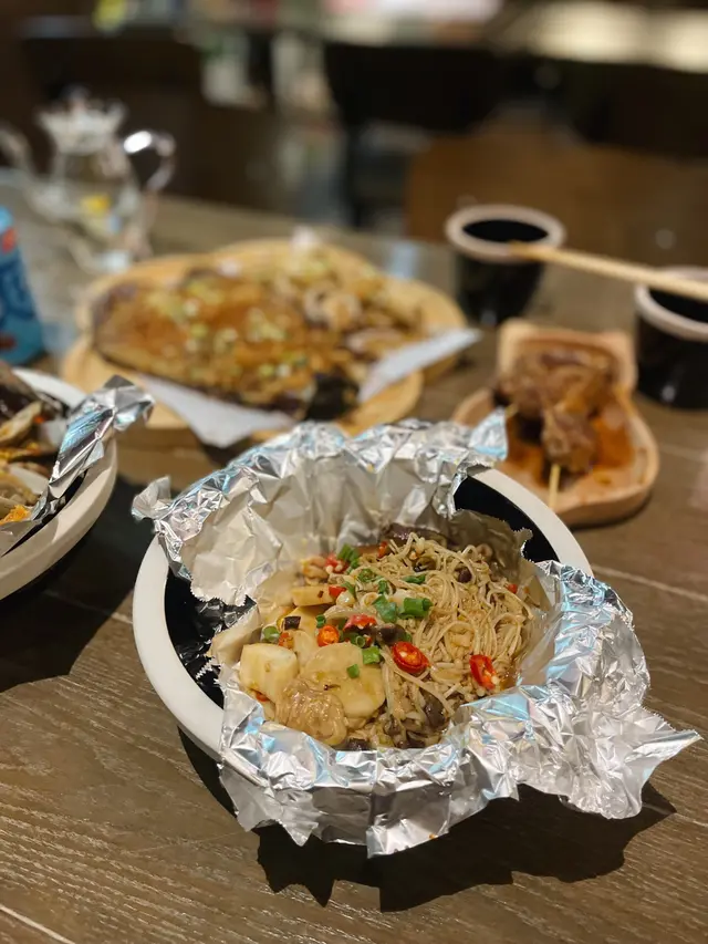 來到這家店,首先目不暇接,一大排頗有創意的菜單擺在眼前。入口第一炮,必須點讚蒜蓉炒花甲,花甲彈牙嫩滑,同炒出來的爆香蒜蓉勁入味,搞到人哋唔小心一碗飯咁快就見底🍚。跟住嚟個肥牛炒烏冬,肥牛層次分明,同口感滑溜的烏冬扎實地結合得過癮,夾雜嗰啲翠綠色嘴嘴料,個盤色香味俱全,真係唔錯過。咩? 想更加地道? 嚟個蒜蓉燒茄子就得嘞,茄子紮實多汁,蒜香味夠晒濃喉,夠哂霸氣。走著熱線,點咗條鹽燒青魚,皮脆肉嫩,每一啖都滲透嗰種海鮮嘅鮮甜,微微鹽焗味道,襯得檸檬香氣更加提嚟🍋。串燒牛舌/豬頸肉/羊肉呢,簡直係醬料昇華嘅體現,孜然辣椒都包圍住每一口肉嘅靈魂,食落去是一次味蕾嘅舞蹈🔥。飯後鮮菠蘿同燒流心芝士年糕,一甜一鹹,完美收尾。流心芝士年糕內心糯而不膩,芝士味滿載,溫暖人心❤️。怪不得呢度咁多人推介,食物質素確實過硬,味道原汁原味地道。下次到過嚟,仲有好多未試過嘅菜式等緊我,期待再嚐新滋味!…查看更多