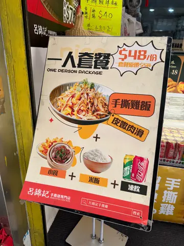 行過見呂錦記手撕雞專門店有個套餐poster, 價錢$49包一份手撕雞、一個小食配埋白飯仲送一罐汽水,真係好鬼抵,買個返屋企試吓!返到屋企懶有儀式感咁轉晒落碟,發現原來兩個1人餐都幾多嘢喎!本身諗住買個手撕雞返去加餸,點知食呢個已經夠飽😂手撕雞我試咗佢哋嘅原味同香辣。原味食落去有似鹽焗雞,雞肉嫩滑,雞皮爽脆。但係我更加鍾意佢哋嘅香辣味,麻麻辣辣,非常惹味!小食我試咗雞腳同雞腎。雞腎好好味呀 🤤 平時外面食嘅雞腎多數切片,但係佢哋呢度係切半,口感特別滿足,爽脆得嚟又唔韌,仲有好香嘅花椒味,好出色👍🏻見到舖頭仲有好多其他口味,下次再行經過嗰陣,再試吓其他味!…查看更多